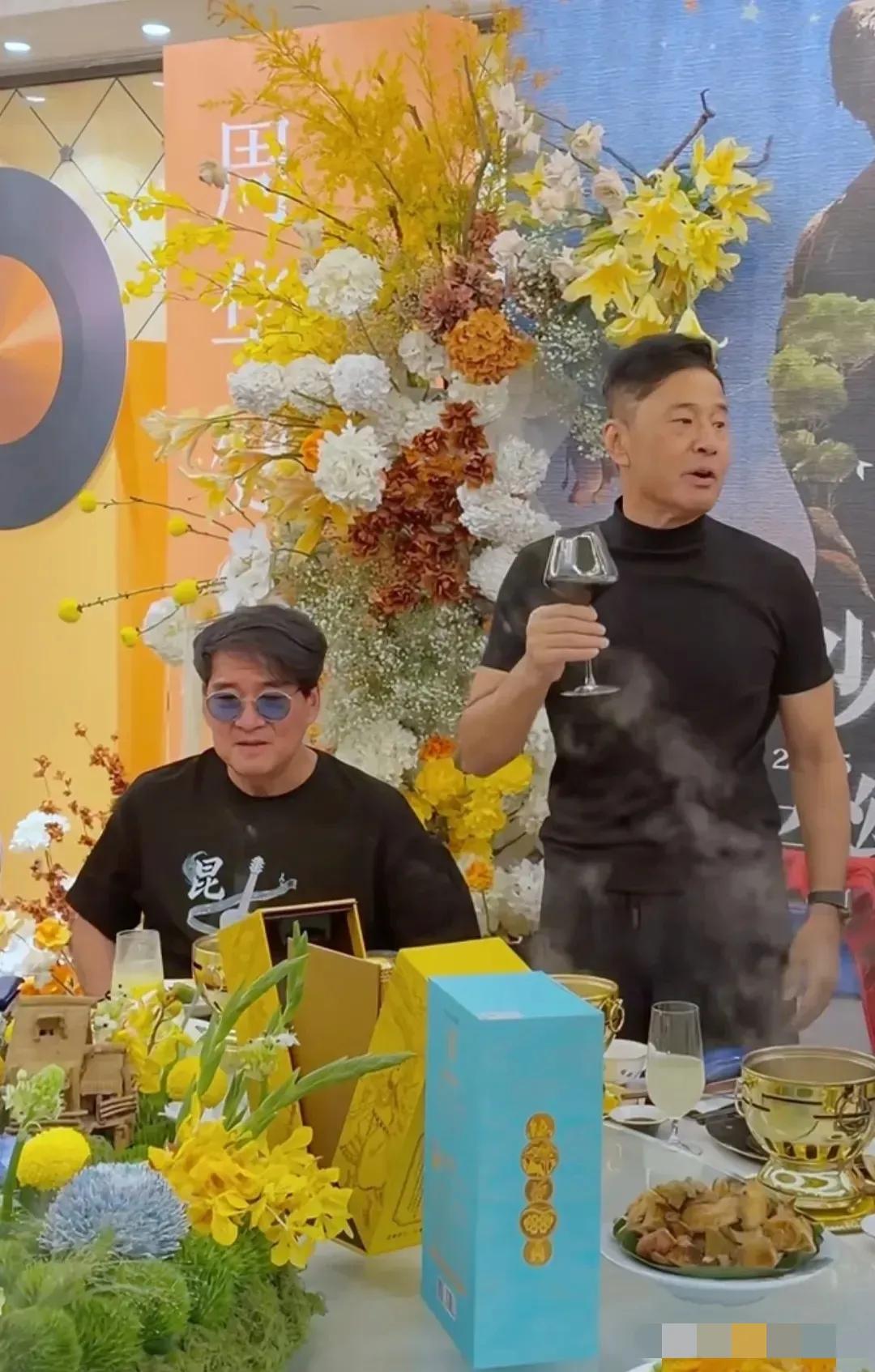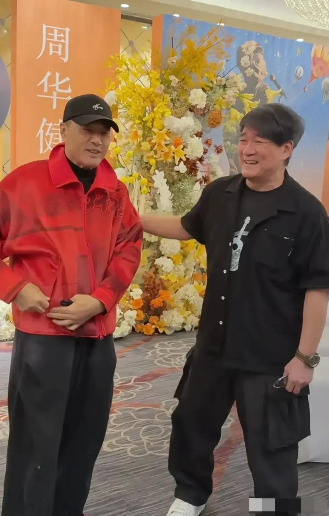 画面中67岁的于荣光身着红上衣头戴鸭舌帽,看上去胖瘦合度,硬朗挺拔,气色盈和,忒显年轻;而64岁的周华健略微发福,皮松肉垮,面孔馒化,颇显老气,你看呢?