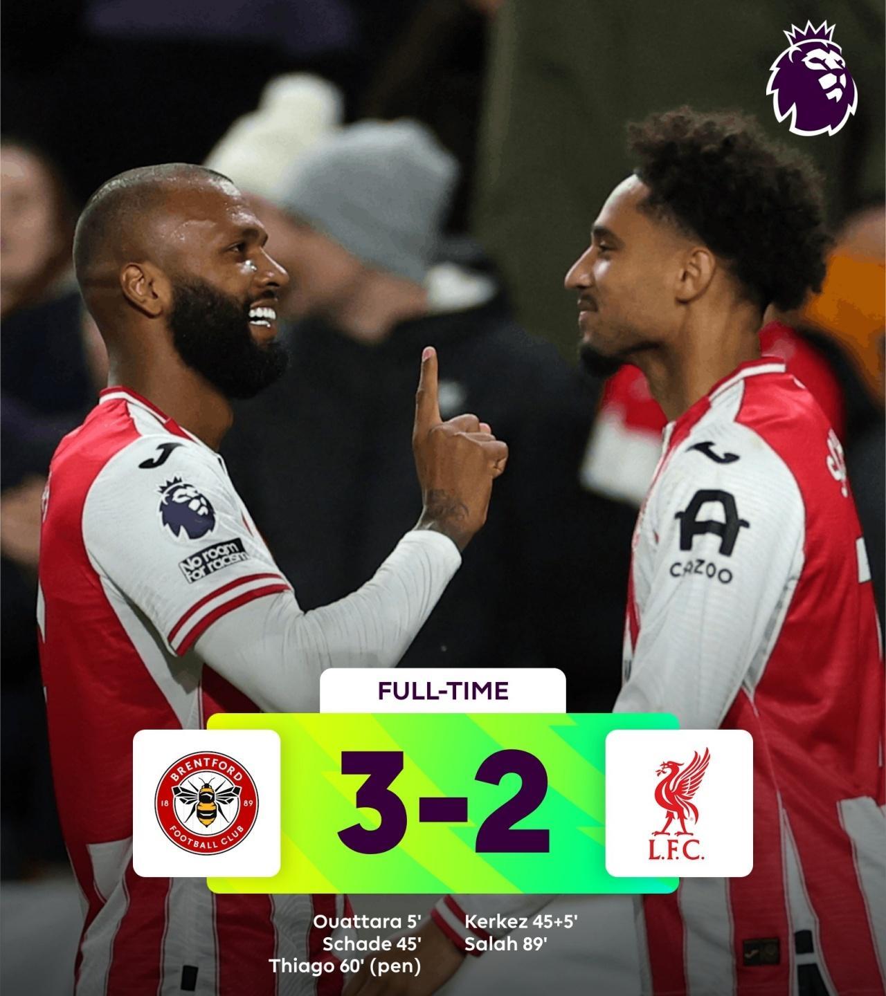危机重重、四连败 英超第九轮一场焦点战在社区球场展开激战,卫冕冠军利物浦做客挑战小蜜蜂,最终布伦特福德3-2送给红军联赛四连败,斯洛特遭遇执教利物浦以来的最大考验! 去年五月,斯洛特离接替克洛普成为红军主教练,斯洛特也顺利带领球队拿下上赛季的英超冠军,本赛季利物浦超大手笔引进多名强援,各项赛事也收获一波七连胜,然而最近六场比赛,一胜五负、联赛更是四连败排名掉出前三,斯洛特现在已经成为利物浦输球的头号战犯,从前的小甜甜现在甚至连牛夫人都不如! 英超五轮过后利物浦还全胜15分领跑,领先红魔曼联8分,现在九轮过去,利物浦还是15分已经掉至第六,曼联16分已经升至第四,反超红军一分! 未来四场比赛,利物浦将先后迎战强敌,联赛杯对阵水晶宫、联赛迎战维拉和曼城、欧冠PK皇马,一旦战绩不佳,恐怕斯洛特在红军的未来要打上问号了!