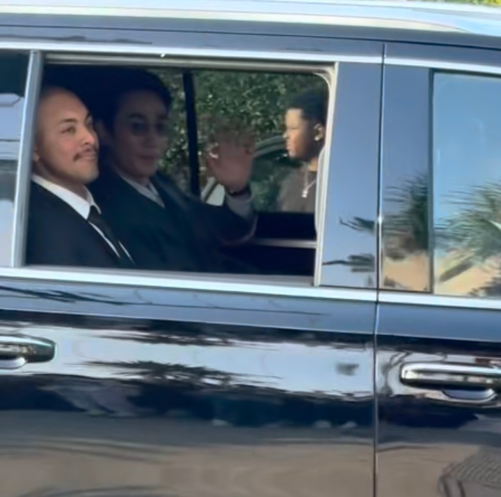 张天爱跟素人合影,胯真的好宽,大宅院似的
