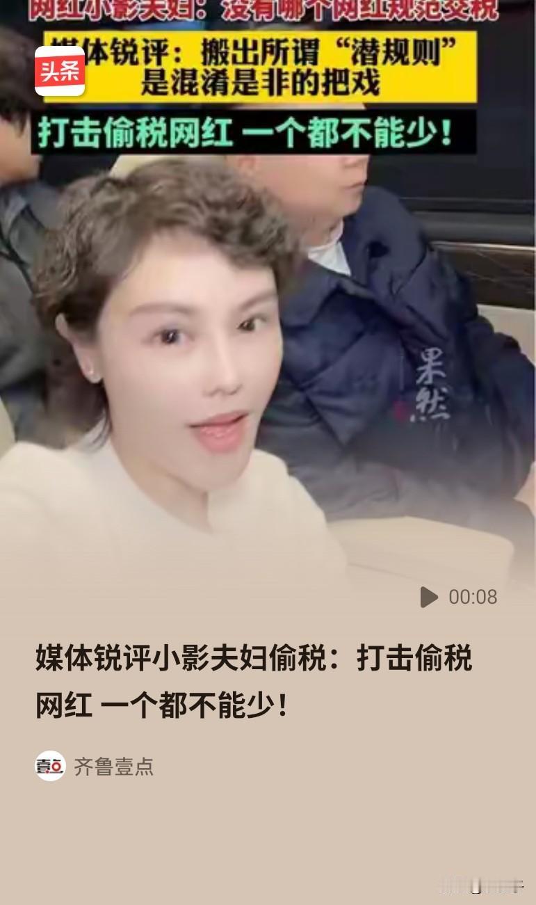 网红小影夫妇扬言,没有一个网红正规纳税,自己被处罚封号,还不是照样播。视频爆火,税务局回复说知道了。 不知道接下来,税务局和平台怎么处罚他们,有人说,直接顶格处罚,踢出网络,永久封杀。真是搞不明白。 违法了,咋还这么高调,如此嚣张。你老老实实,偷偷摸摸发财不就得了吗?非得往自己身上捅刀? 自己怎么红的不知道吗?网络时代,流量能造就一个人,也能毁掉一个人。刹那之间。也有网友说。 归根结底还是处罚的太轻了,造成好多人价值观扭曲,一切向钱看,笑贫不笑娼。只要有钱了,自己就是对的。 也有网友说,真不明白网络,为啥有人看看直播就买东西,自己从来不在直播间买东西。 买东西的都是些什么人? 小影夫妇 小影夫妇偷税 小影直播间 网红纳税 网红小影夫妇