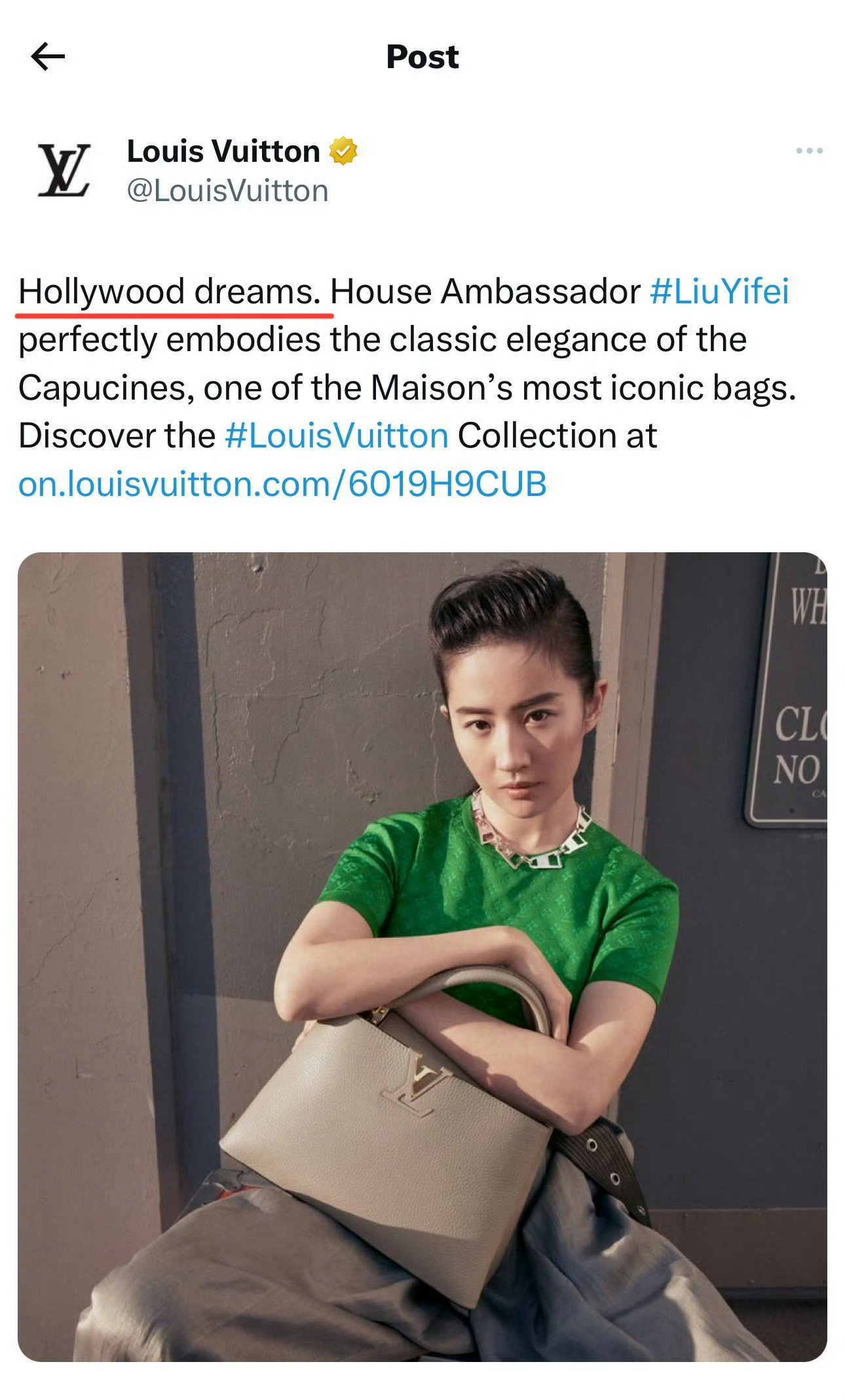 LV当时这次capucines的campaign也是在LA/Hollywood某个studio拍的,不过不确定是哪个,所以当时驴文案写的Hollywood dreams也算一语双关[阴险] 刘亦菲时尚表现力也是顶级☝️