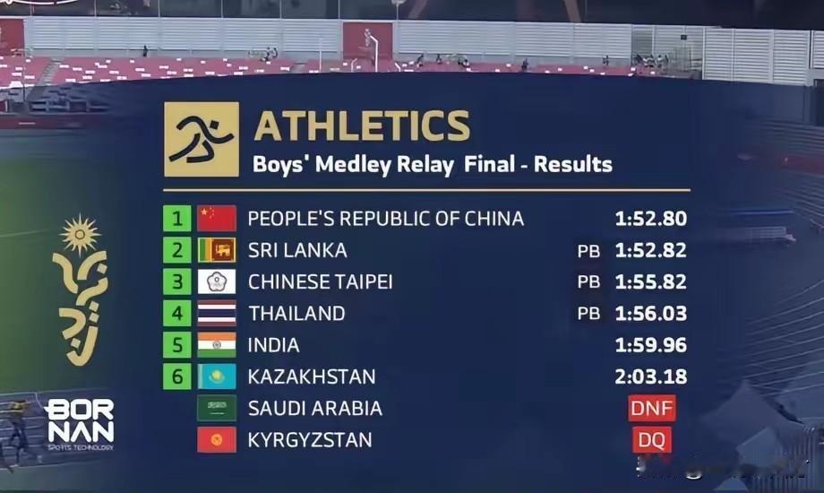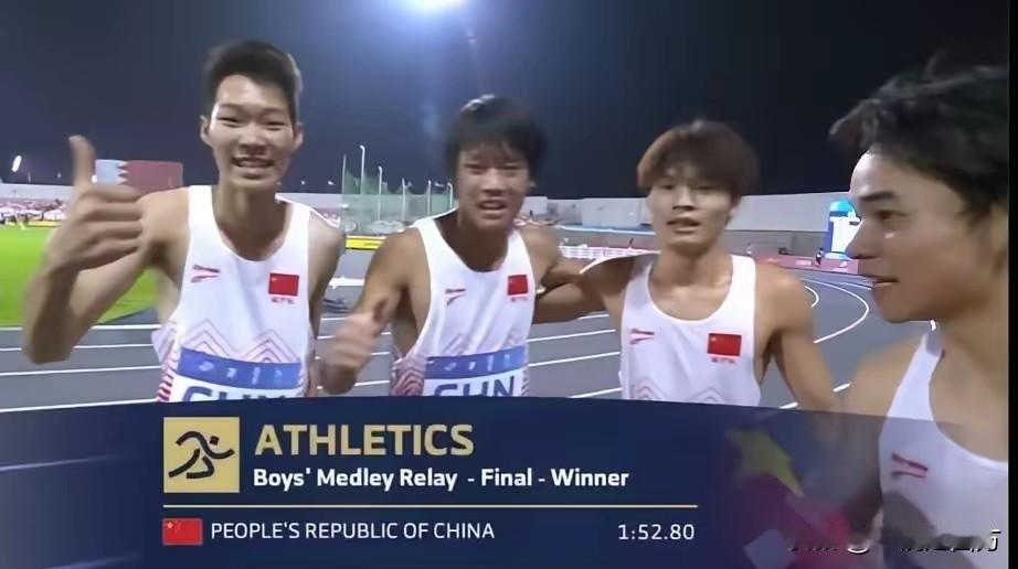 在巴林举行的亚青会田径比赛一个很有意思的项目男子“异程接力”昨晚压轴进行,中国队由浙江的林晓海、福建的赖建光、黑龙江的朱天赐、广东的杨嘉组队出战,凭借最后一棒的强力冲刺,以0.02秒力压斯里兰卡队,以1分52秒80获得冠军,这项比赛要求四位选手依次跑100米、200米、300米和400米,算是“短跑混搭”,而我们的四位选手来自四个不同省份,也刚好符合“混搭”的主题。