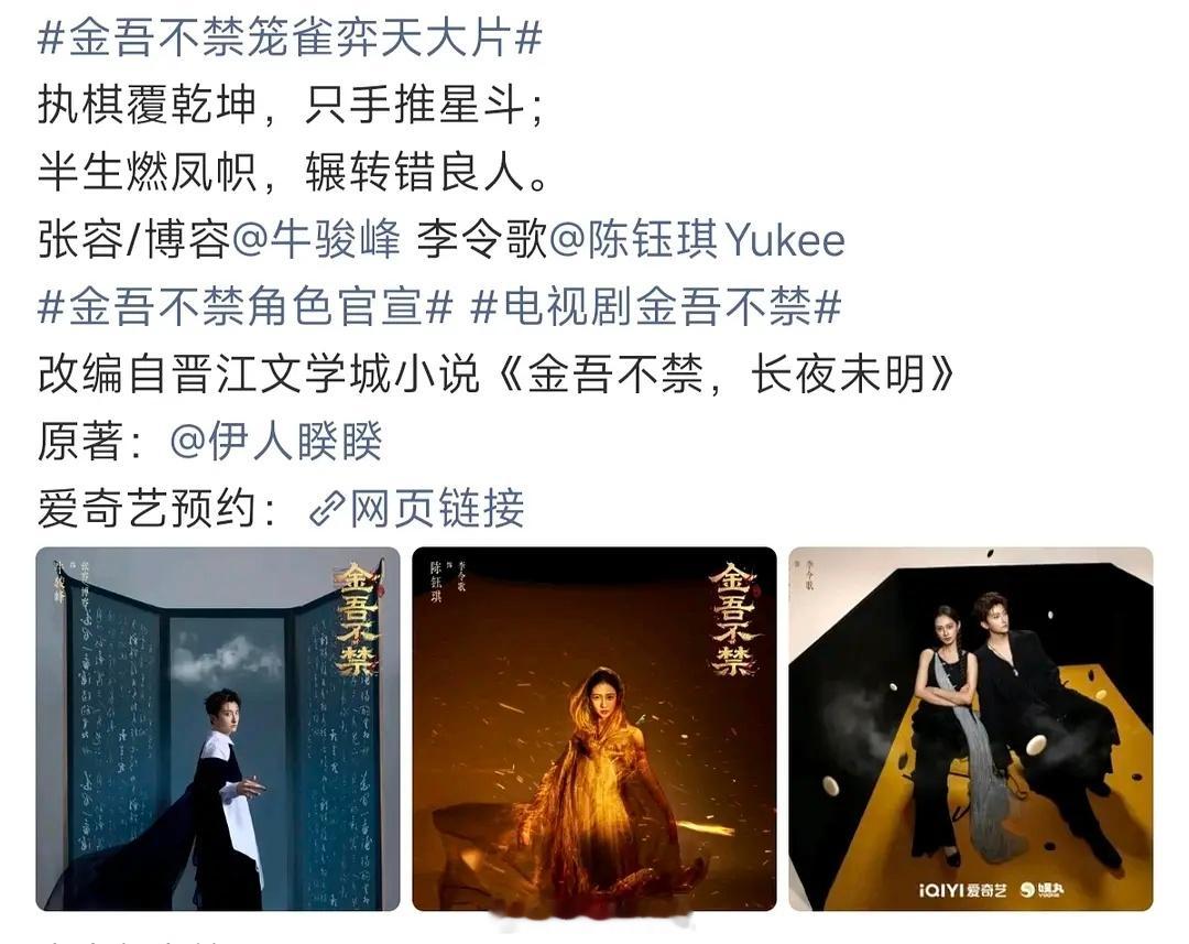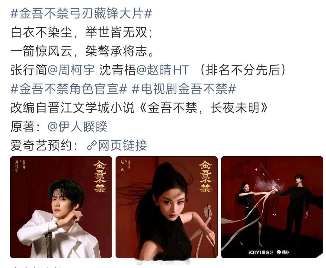 金吾不禁角色官宣:周柯宇、赵晴(排名不分先后)、夏之光、马秋元、牛骏峰、陈钰琪、王佳怡、姚弛、杨星慧、蔡正杰、陈添祥。。。
