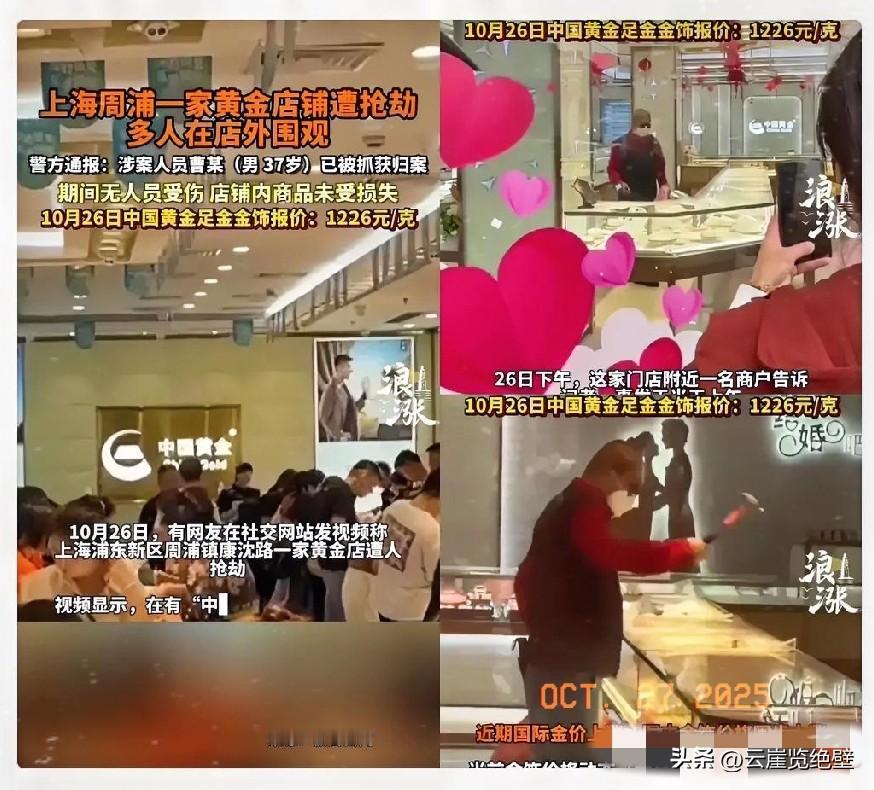 上海这起金店抢劫,看完我鼻子酸了! 10月26号上午,周浦一家中国黄金店,
