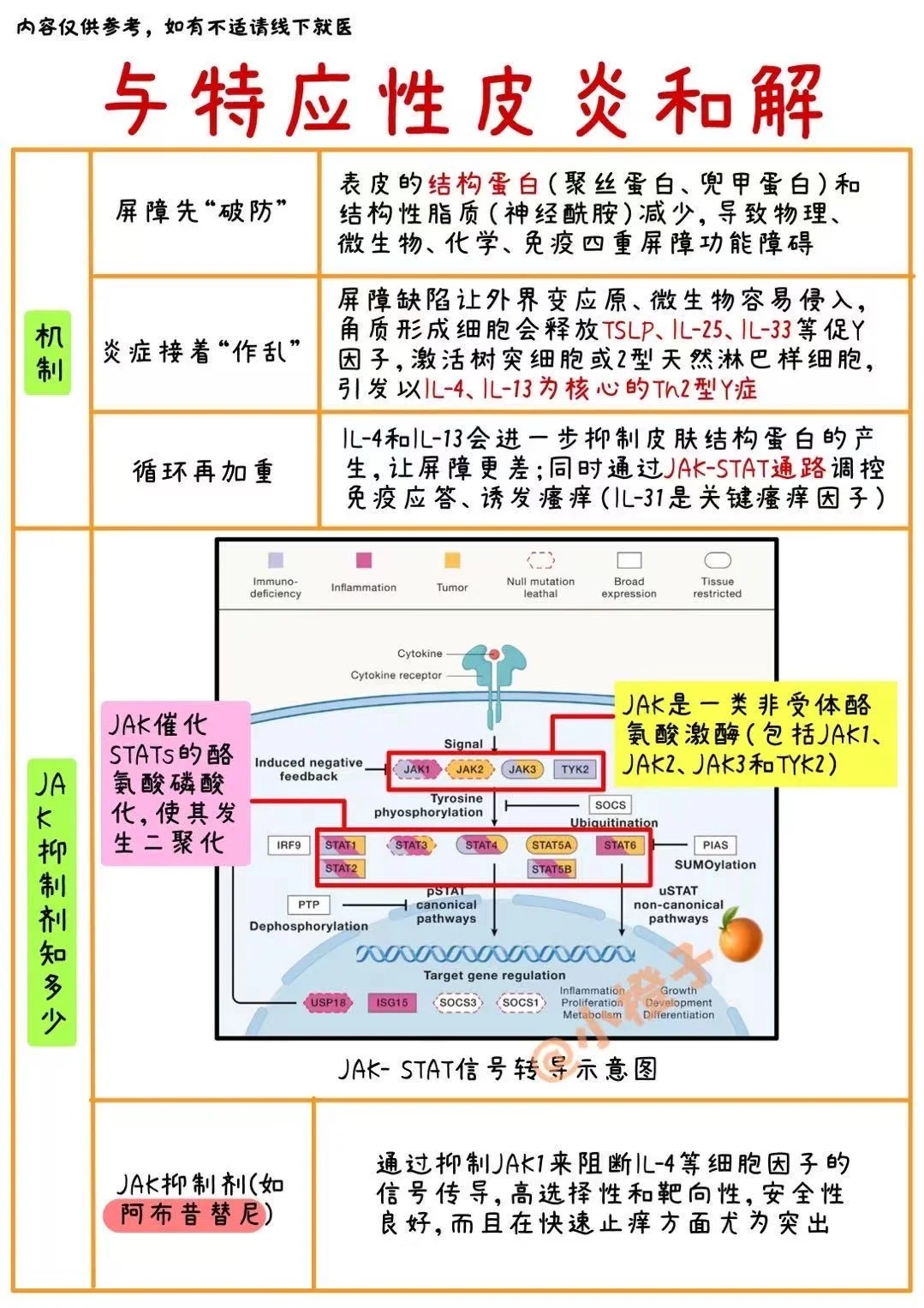 后来了解到,针对AD的这种特点,有专门的应对方式,比如JAK抑制剂里的阿布昔替尼。它是专门瞄准JAK1的——通过阻断IL-4这些细胞因子的信号传导,从源头帮着控Y症、止瘙痒,靶向性👆,安全性也有保障。晚上终于能睡个整觉啦💤,白天也不用总下意识去抓皮肤,整个人的状态都松快了很多。