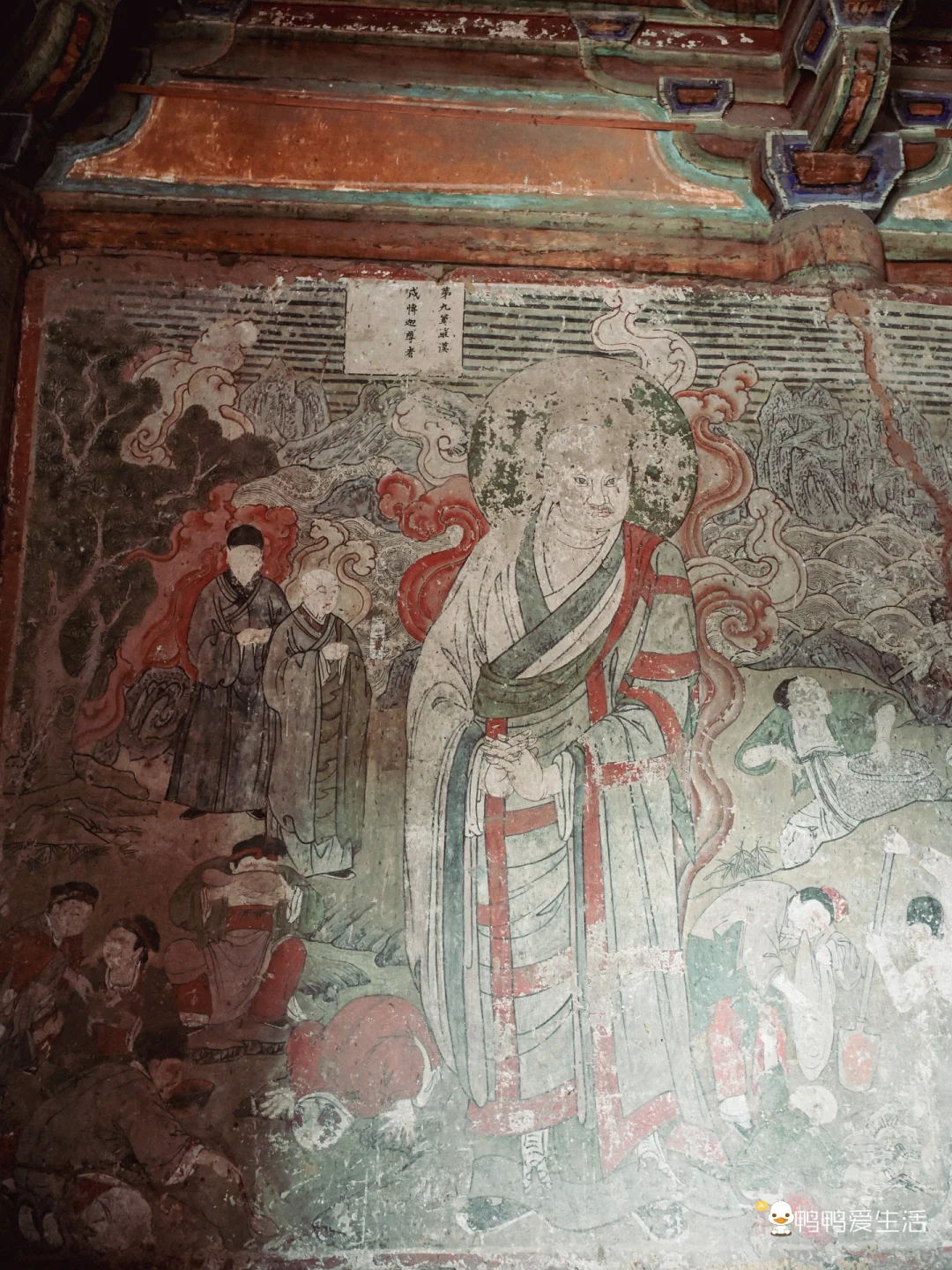 ✅壁画艺术 :观音阁下层四壁绘有壁画,以佛教十六罗汉为题材,具有元代风格,明代重描,从绘画艺术角度看,在国内堪称一流。