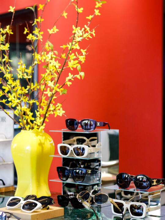 整个店铺陈列各个知名品牌的眼镜