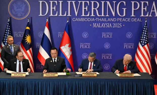 特朗普直接把东盟峰会当成了自己的“主场”,一边盯着泰国和柬埔寨把和平协议给签了,一边转头就跟这俩国敲定合作,一天三件大事连续不断比赶大集还热闹。 先说说最让人捏把汗的泰柬边境这事儿,今年7月的时候俩国还为了边境那片地吵得动了手,现在总算坐下来和和气气签了和平协议,而特朗普跟马来西亚总理安瓦尔一起当了见证人。 除此之外,协议里写得清清楚楚,不仅重型武器全都拉走,边境得一起排雷,而且还得专门组个队抓跨境诈骗的。 对此柬埔寨首相洪玛奈当场就说“得让和平一直稳着”,就连阿努廷也拍着胸脯保证“不让老百姓再提心吊胆”,这波操作下来边境的人总算能松口气了。 可这边协议刚签完,美国就赶紧凑上来“搭茬”,先是跟柬埔寨签了贸易协议,他们放话表示对方的布料、地里种的东西以后可以逐步免关税。 但柬埔寨得给美国的工业品和农产品开绿灯,还得把制衣厂工人的工作条件改好点。 不仅如此,特朗普紧接着又跟泰国签了个“关键矿产合作”,说白了就是一起找稀土、锂这些值钱的宝贝,以后泰国得先紧着给美国供货。 不过明眼人一看就知道,这是冲着新能源和军工的产业链来的。 说到底这三件事看着热热闹闹,其实核心就是“和平 跟“利益”俩字,毕竟泰柬不打了是好事,至少不用再担心战争的事儿。 而美国跟俩国合作也是各取所需,但要知道的是桑芳光签个协议也白搭,后续能不能真落到实处、会不会再出幺蛾子才是最关键的。