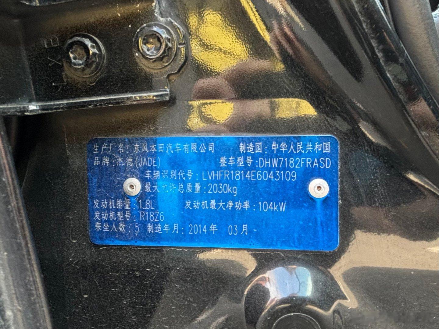 2014年本田杰德1.8自动