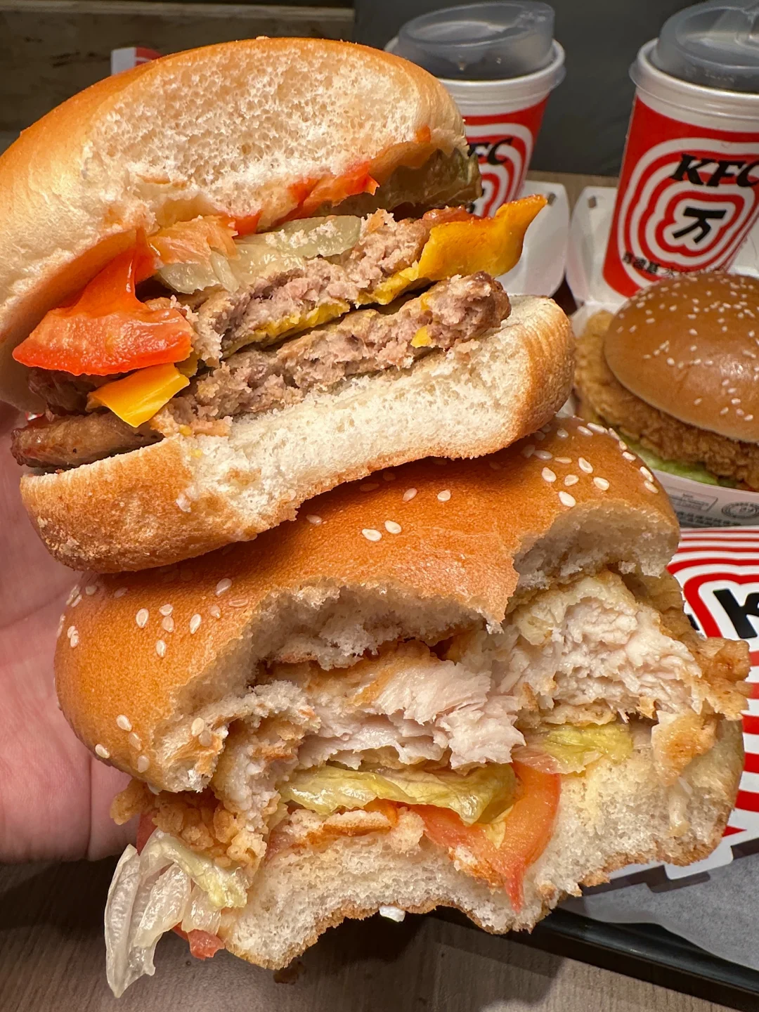 这两款汉堡都是很大个头的,打工人吃一个就能饱!真的很值