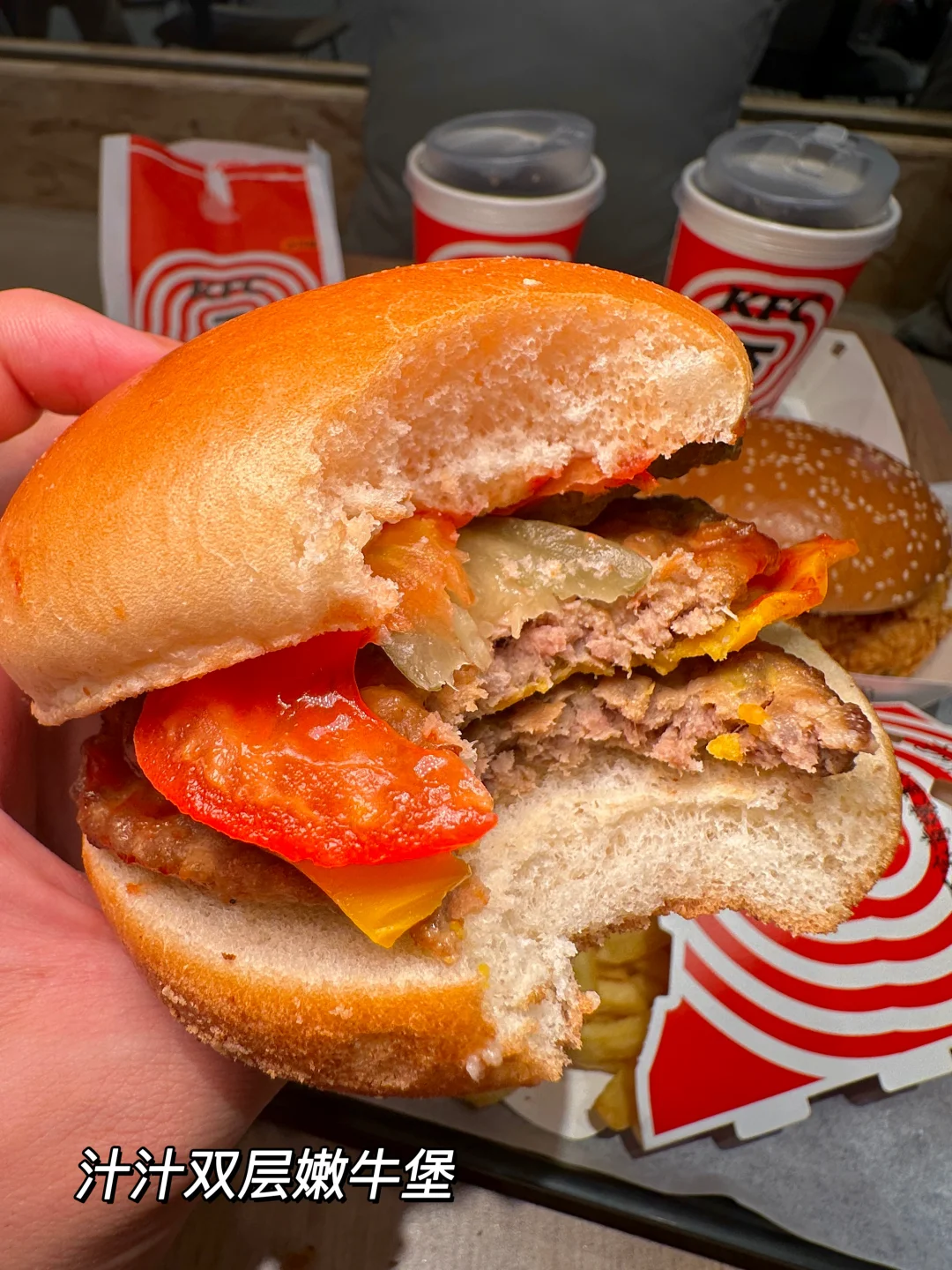 ✔️汁汁双层嫩牛堡超满足OK三件套 💰22.9: