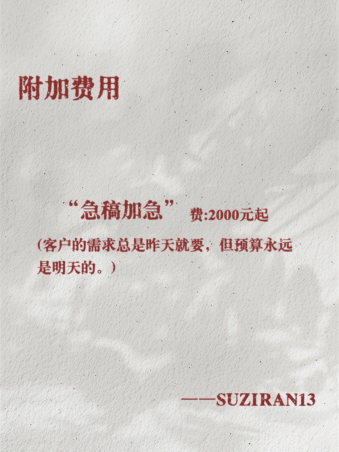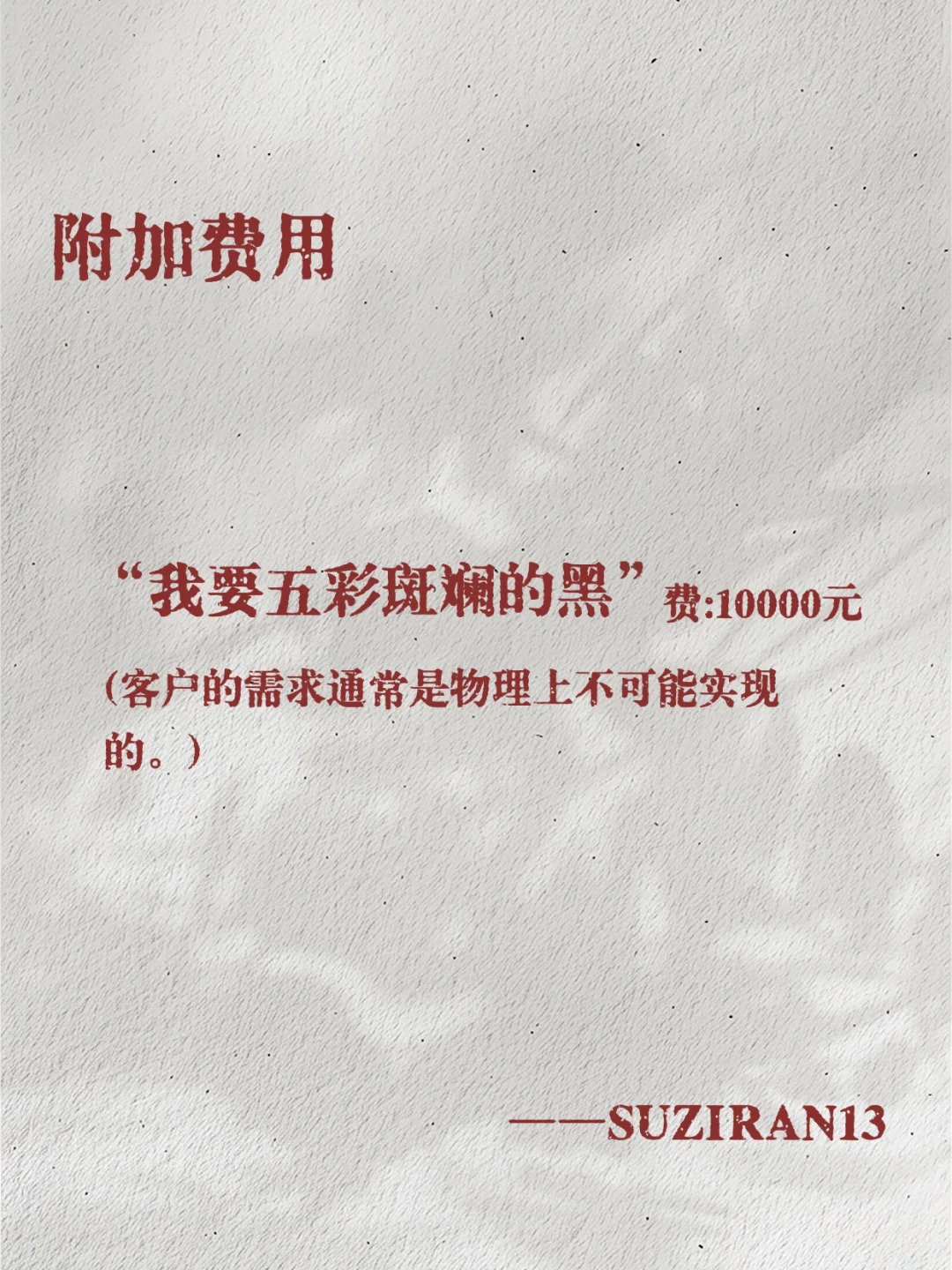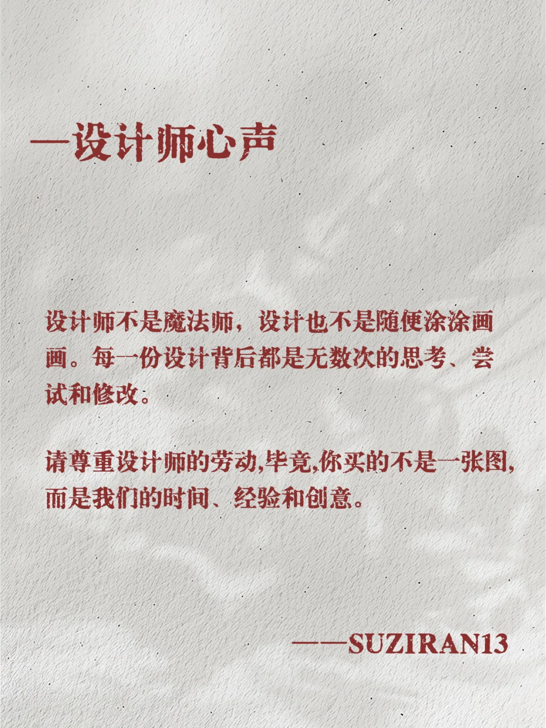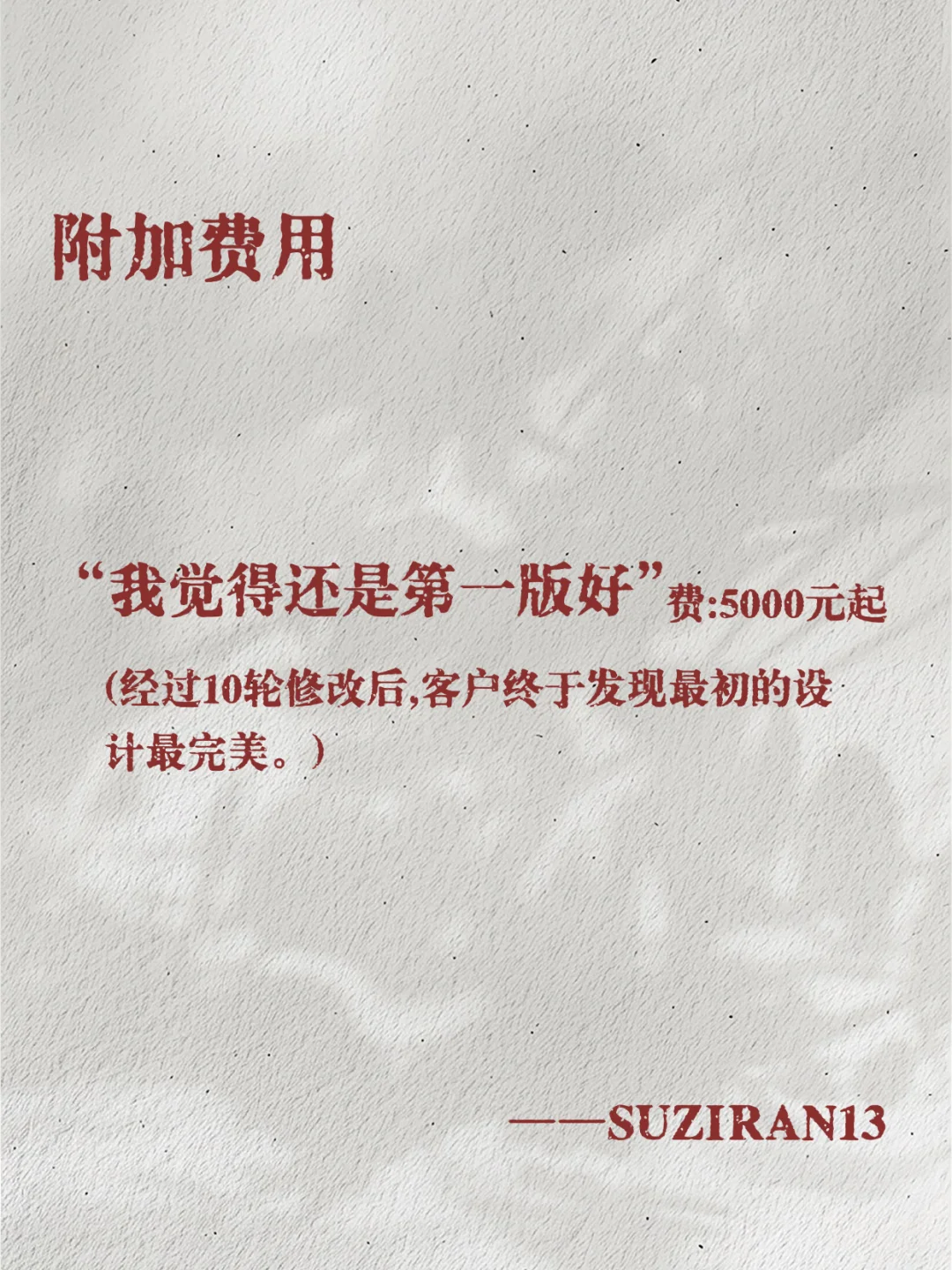 [打卡R]做设计的谁看了不心梗!“随便改改”费500、“朋友说不好看”费1000…还有“五彩斑斓的黑”费10000,物理难实现的需求收费必须狠![黄金薯R] [打卡R]最绝的是“第一版最好”费5000,改10轮回到最初,谁懂啊![哭惹R][哭惹R][哭惹R] [打卡R]但尊重设计免费!只要客户尊重设计师劳动,费用全免~友情价双倍,真朋友不让设计师白干![哇R] [打卡R]设计是时间、经验和创意的结晶,尊重设计师,就是尊重创意本身~[喝奶茶R]