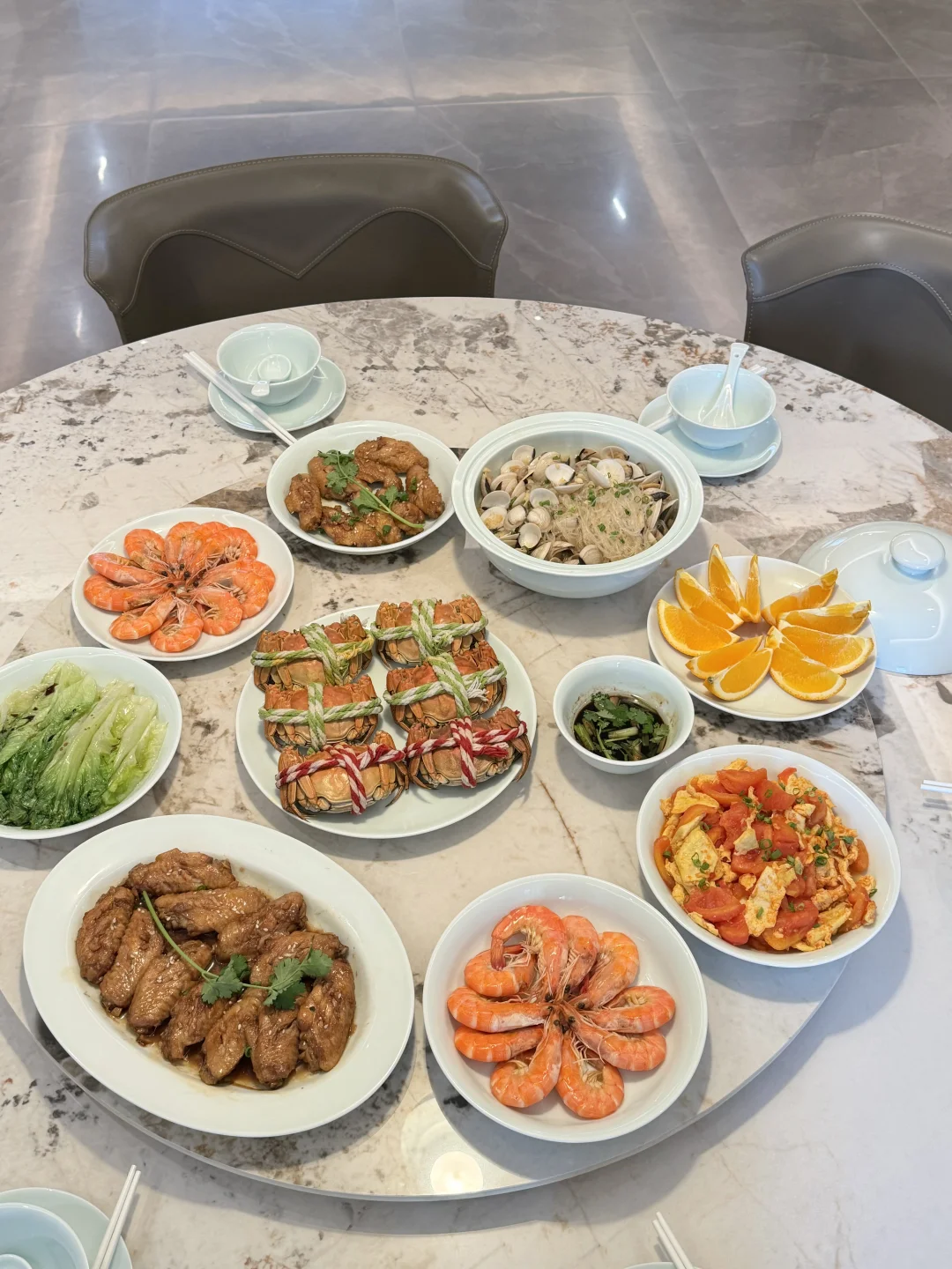 和我家舍友一起步入婚姻的第8年,很庆幸能遇到对的人,今年已经相识13年了,我们有了两个可爱的女儿👨👩👧👧在四线小城市里,努力五年多终于也有了属于我们的大平层🏠 其实和同频的人在一起,结婚会很美好,开心还是不开心的事都能互相分享、一起吐槽、我们相互照顾、一起奋斗~ 幸福很简单,入秋的周末里,一家人加个菜一起相聚,平凡的烟火气里,平平淡淡的日子却最是安心自在❤️ 今日菜谱📒 白焯虾 大闸蟹🦀 可乐鸡翅 粉丝卜卜贝 番茄炒蛋🍅 青菜 水果🍊
