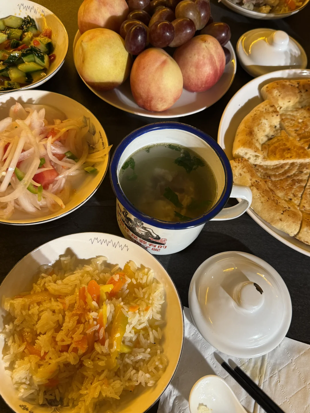 住宿房间非常干净温馨,全屋智能,空调地暖,独立卫浴,酒店标准,完全超预期。晚上安排了丰盛的晚饭,饭后还有篝火晚会,请了当地非遗传承人来表演刀郎木卡姆。星空下唱歌跳舞放烟花点篝火,简直不要太浪漫!如果运气好还能看到银河⭐