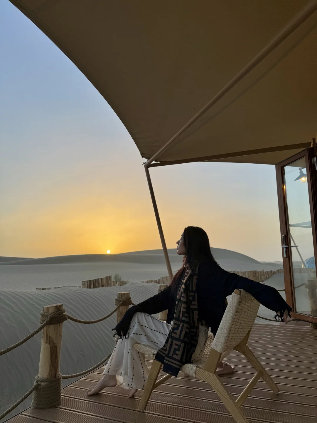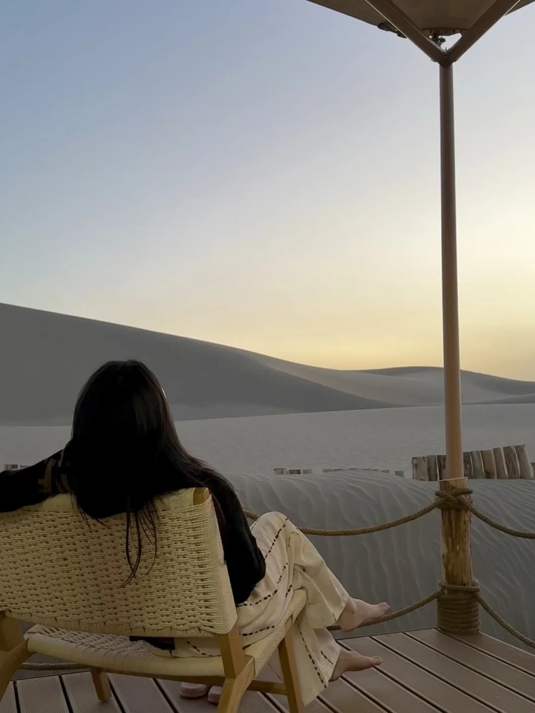 · 清晨:早起欣赏沙漠日出,金辉洒满沙丘的景色令人难忘。在沙丘上的木屋阳台上品着热茶,开启宁静且治愈的一天 !还偶遇了一位看日出的泰国爷爷👴