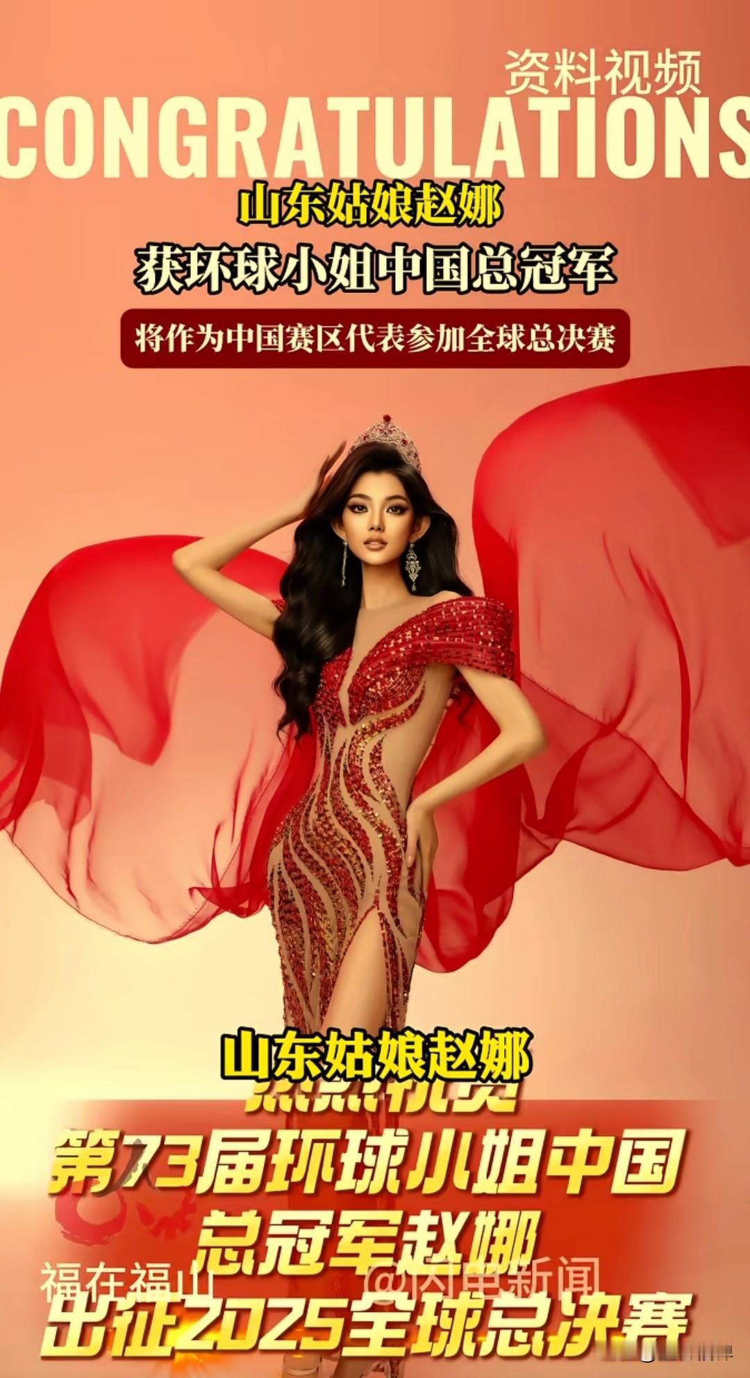 山东姑娘赵娜获得第73届环球小姐中国区冠军,将代表中国参加全球总决赛。 26岁的赵娜,山东日照人,内外兼修的她,琴棋书画样样精通,国标舞、芭蕾,还在乐器方面很有造诣,擅长古筝和琵琶。 除此之外还是全球名校昆士兰大学毕业,她凭借着优雅的气质,卓越的才智和流利的双语能力,在比赛中征服了评委和观众。