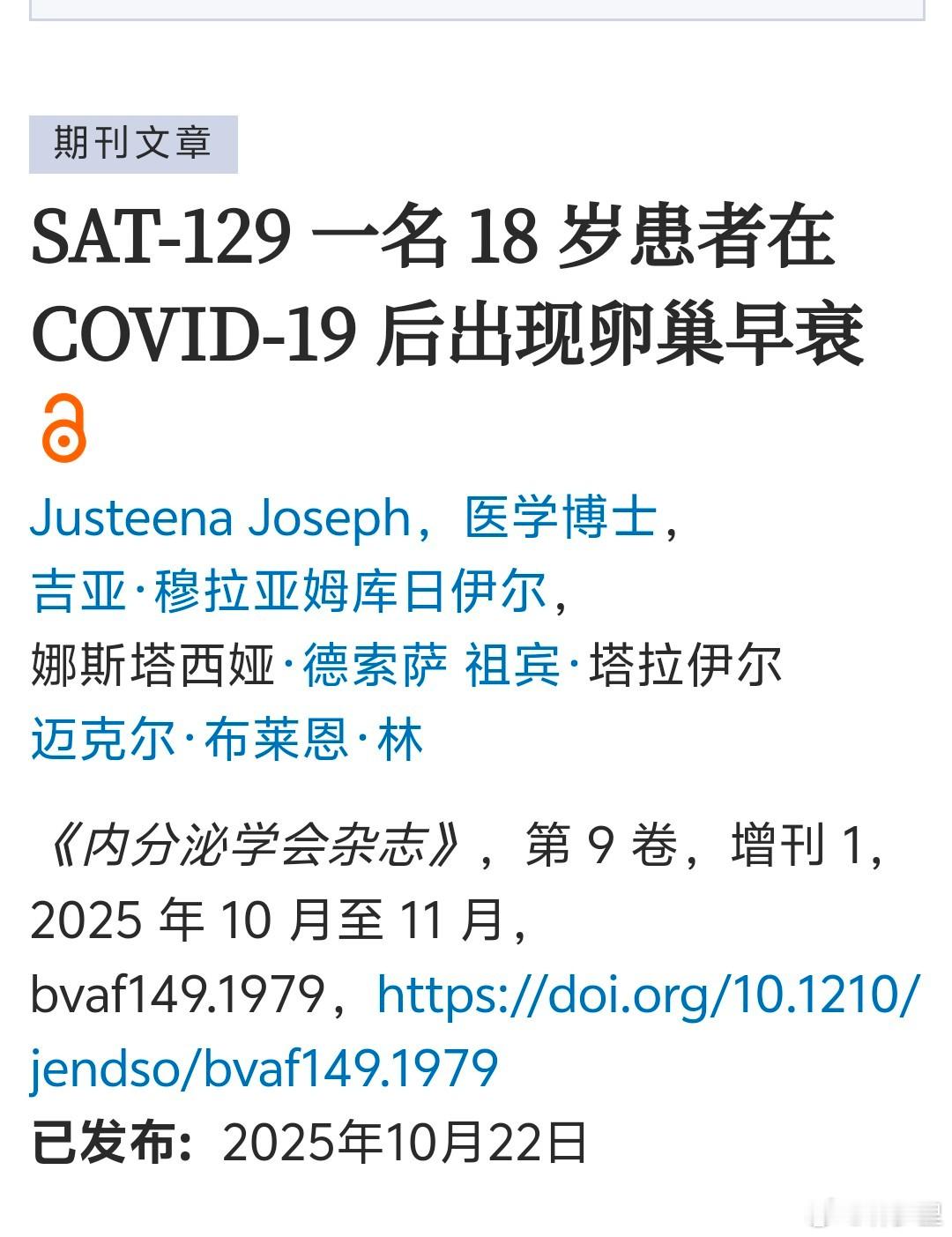 一名 18 岁女孩,在新冠感染过后出现卵巢早衰。