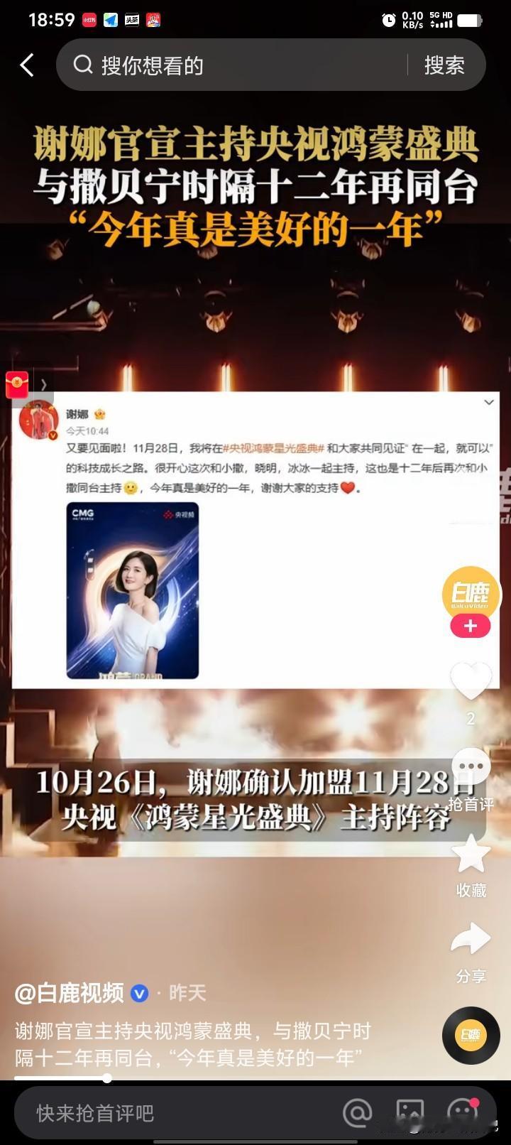 张杰彻底坐不住了, 他实在想不明白, 谢娜都44岁了,居然又被央视翻牌, 还跟撒贝宁同台主持鸿蒙星光盛典! 这消息一出来,不少观众也跟着懵——谢娜的搞笑活泼风, 跟央视一贯的端庄大气也太不一样了,她能hold住?其实真不用瞎操心, 主持这么多年, 她早把“场合感”刻进骨子里了。 能被央视反复邀请,根本不是运气。 搞笑是她的标签,但控场能力、 应变本事才是底气,什么场合该收该放,她比谁都清楚。 这哪是“跨界”,分明是实力被主流认可的证明。 你觉得谢娜这次会带来不一样的主持风格吗?她和撒贝宁的同台能擦出什么火花?