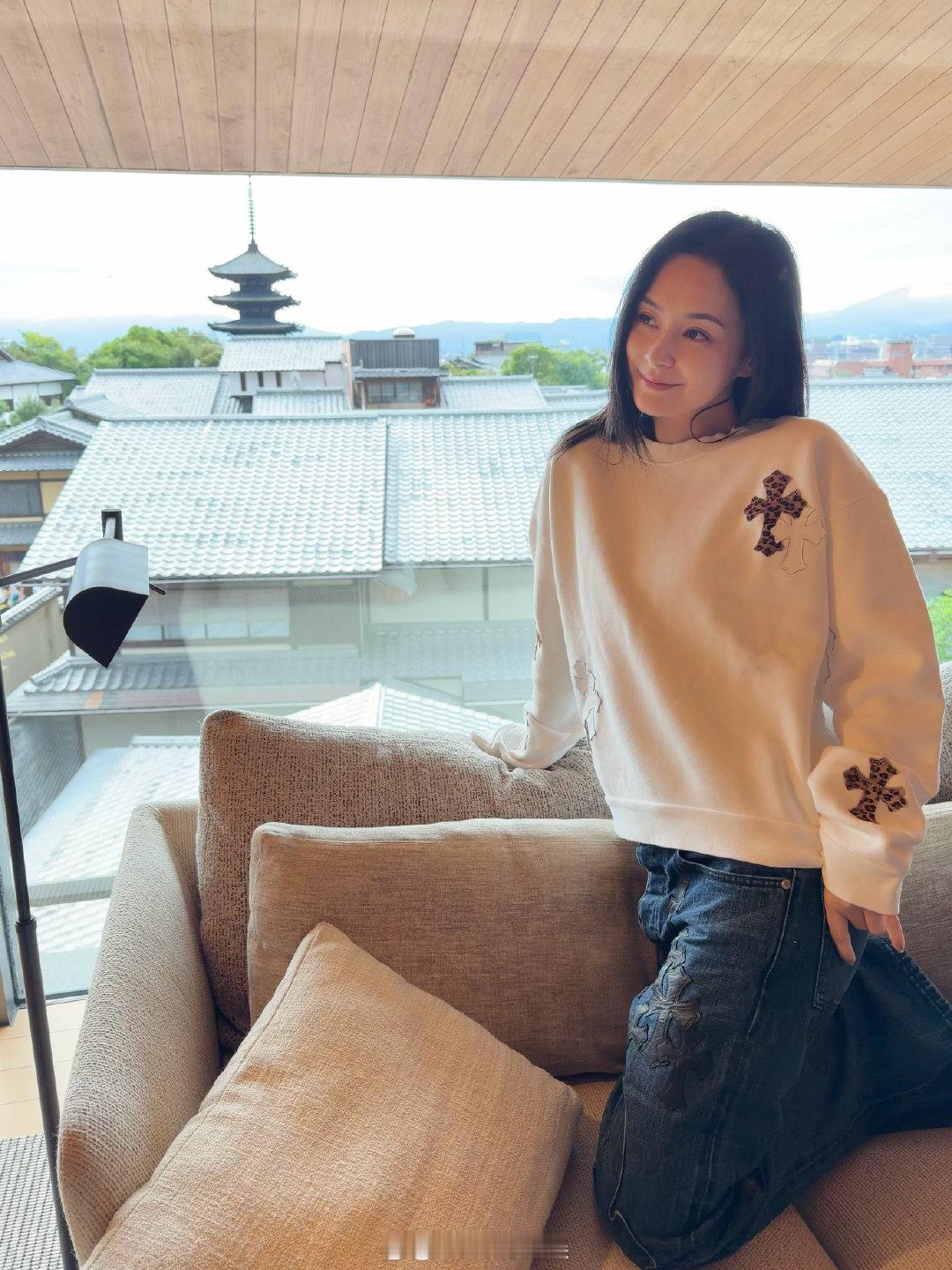 阿娇皮肤状态阿娇晒最新旅行随拍,简单的纯色卫衣搭配牛仔裤,休闲又松弛,这个皮肤