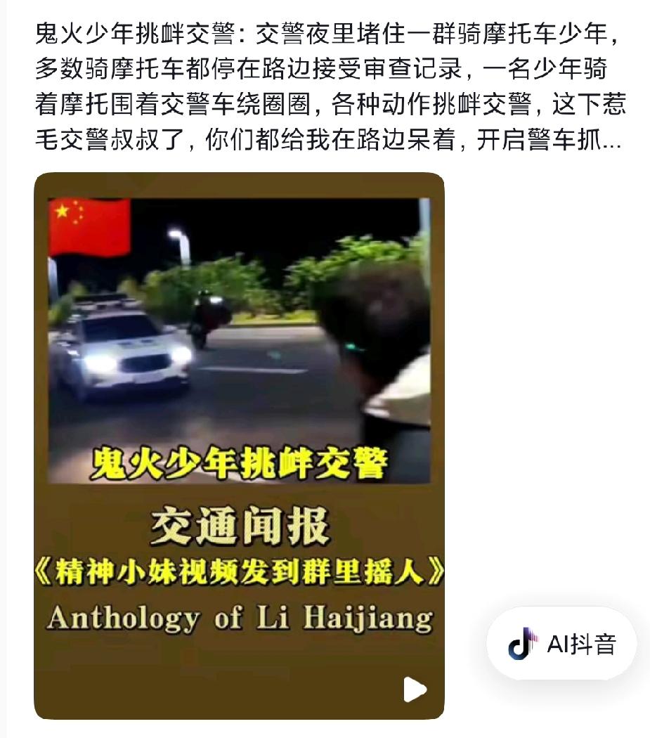 惊呆了!北京“鬼火少年”48小时落网,车速竟达100公里/小时! 深夜狂飙到100公里每小时的“鬼火少年”在街上闹事?结果才48小时就被送进了拘留所!为了寻求快感而忽视他人安全,法律迟早会让这些不守规矩的人付出代价。 电动车开到100公里每小时有多疯狂?这不是在拍戏,而是北京丰台区真实上演的街头狂飙现场! 就在前几天晚上,闵某某和王某某驾驶着经过改装的电动摩托在路上疾驰,噪音大得吓人,他们还逆向行驶、开着刺眼的爆闪灯,附近居民被惊动后赶紧拍视频向警方举报。民警一调查就震惊了——这些车居然能跑到100公里每小时,远远超过了国家标准规定的25公里限速! 更令人担忧的是,他们改装车辆纯粹是为了找刺激,压根没把行人的安全当回事。好在警方行动超快,48小时内就迅速破案,两人因为寻衅滋事被处以行政拘留。 这次警方的效率确实挺高!但网友们也在讨论:对改装车的监管是不是应该再加强点?为什么这种超速车能这么轻松就上路行驶? 道路可不是游乐场,父母辛辛苦苦把孩子拉扯大,别因为一时的冲动毁掉整个人生啊!大家来聊聊,怎么才能从根本上去除这种非法改装车呢?