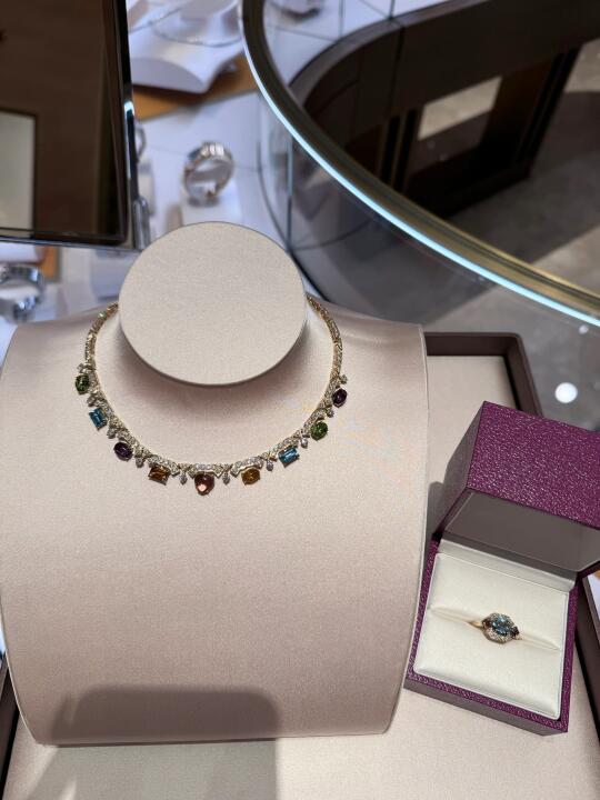 谢谢宝格丽的邀请 试戴了刘亦菲佩戴过的彩宝高珠 太幸运咯 沾沾仙气[黄金薯R] 牛仔小废包实物超可爱 送长辈的小扇子 前年买的时候3w不到 现在涨到6w[石化R] 成功的理财产品宝格丽