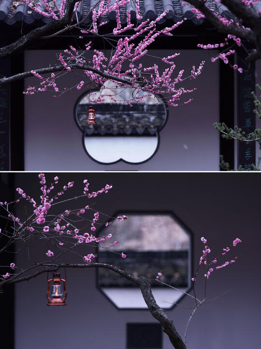 江南园林小巧别致在这里体现的淋漓尽致,梅花树的造型更是与梅花窗相映成趣,别忘了带一盏小灯在蓝调时开启,你会惊讶于这呼之欲出的中式浪漫。