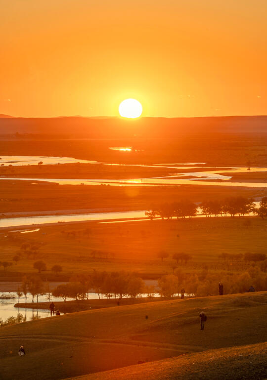 “天苍苍,野茫茫,风吹草低见牛羊”,这首北朝民歌是我对草原zui初的印象。但直到工作了,呼伦贝尔的风才吹进我的梦里。当一轮壮阔的红日落在草原湿地上,才知道天地有多辽阔无垠。