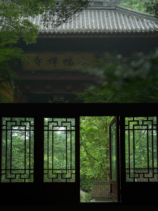 杭州夏天是满眼的翠绿,体感上十分炎热,但绿意消暑。耐心等一阵风来,吹开花窗,吹响绿叶,便是古人枕山栖水的诗意。