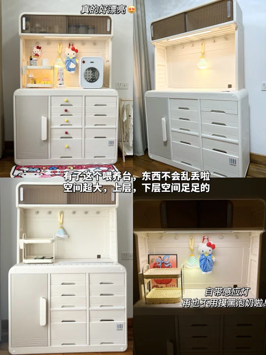 这个绝了!之前一个宝宝东西都多的没地放,桌子上摆的乱七八糟,有了这个喂养台宝宝吃的用的喝的都可以装进去,空间杠杠的👍