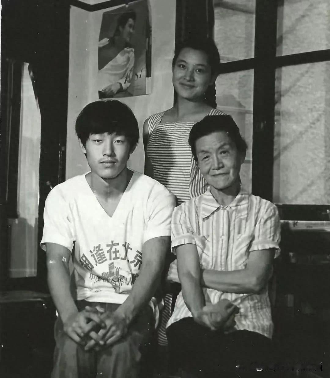 这是拍于八十年代的一张老照片,陈冲和哥哥、外婆三个人的亲切合影,那个时候她的脸圆嘟嘟的,眼睛又大又圆,在那个年代算是天然的美女。 墙上还挂着一张她的照片,当年她和刘晓庆,还有唐国强几个人演绎的电影,火遍了大江南北,如今这些演员都老了。