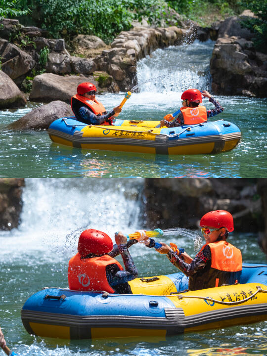 ✅中午【七星谷漂流】2.8 公里超长赛道,15 个水潭 + 140 米落差,前半段刺激尖叫,后半段平缓打水仗,亲子可玩