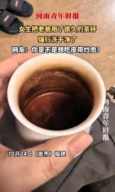 闯出大祸了!”近日,福建这姑娘,现在估计正对着干净茶杯犯愁——好心给老爸刷了杯子,结果全网都在劝她“赶紧找地方躲躲”! 事儿特实在,姑娘早上起来,瞧见老爸用了十几年的白瓷茶杯,里头茶垢厚得能刮下来,黄黑交加,指甲一抠就掉渣。她越看越别扭,心里直念叨:“这天天用,得藏多少细菌啊!” 没多想,她挽起袖子就忙活开了,接热水、挤洗洁精,拿海绵里里外外搓,胳膊都搓酸了,终于把杯子刷得锃亮,白得晃眼,跟刚买的新杯子没啥两样。 她捧着杯子美滋滋的,觉得老爸肯定得夸她懂事,还拍了段视频发上网,想晒晒自己的“劳动成果”。 可视频一出来,评论区直接炸了!“闺女你闯大祸了”“赶紧把杯子藏起来,老爷子要生气了”“这哪是刷杯子,是刷掉老爷子的心尖肉啊”,一条条评论看得姑娘懵了:我刷个杯子,咋还成罪人了? 后来她才弄明白,在爱茶的老爸眼里,那层茶垢根本不是脏,是宝贝!那是十几年喝了上百斤茶叶,一点点“养”出来的“茶包浆”,是茶气浸出来的“茶魂”。老爸平时总跟人炫耀,这杯子就算不放茶叶,倒点热水晃一晃,都能飘出茶香,这是他喝茶的脸面,是老茶客的记号,比啥都金贵! 姑娘这一顿猛刷,直接给杯子“清零”了,等于把老爸十几年的念想、对茶的那点执念,全给刷没了。其实姑娘讲卫生没错,想让老爸喝得干净也没错;老爸宝贝那层茶垢,念着岁月的味道,也没错。 关键是咱们年轻人总觉得“我为你好”就够了,却没琢磨透,长辈眼里那些“不卫生”的东西,背后藏的是他们的习惯,是日子攒下的念想。孝顺真不是光凭好心,有时候“顺着”他们的心意,比硬邦邦的“为你好”更暖心。 你家爸妈有没有这种“别人看着普通,自己当宝贝”的物件?是旧收音机、老棉袄,还是像这样的老茶杯?
