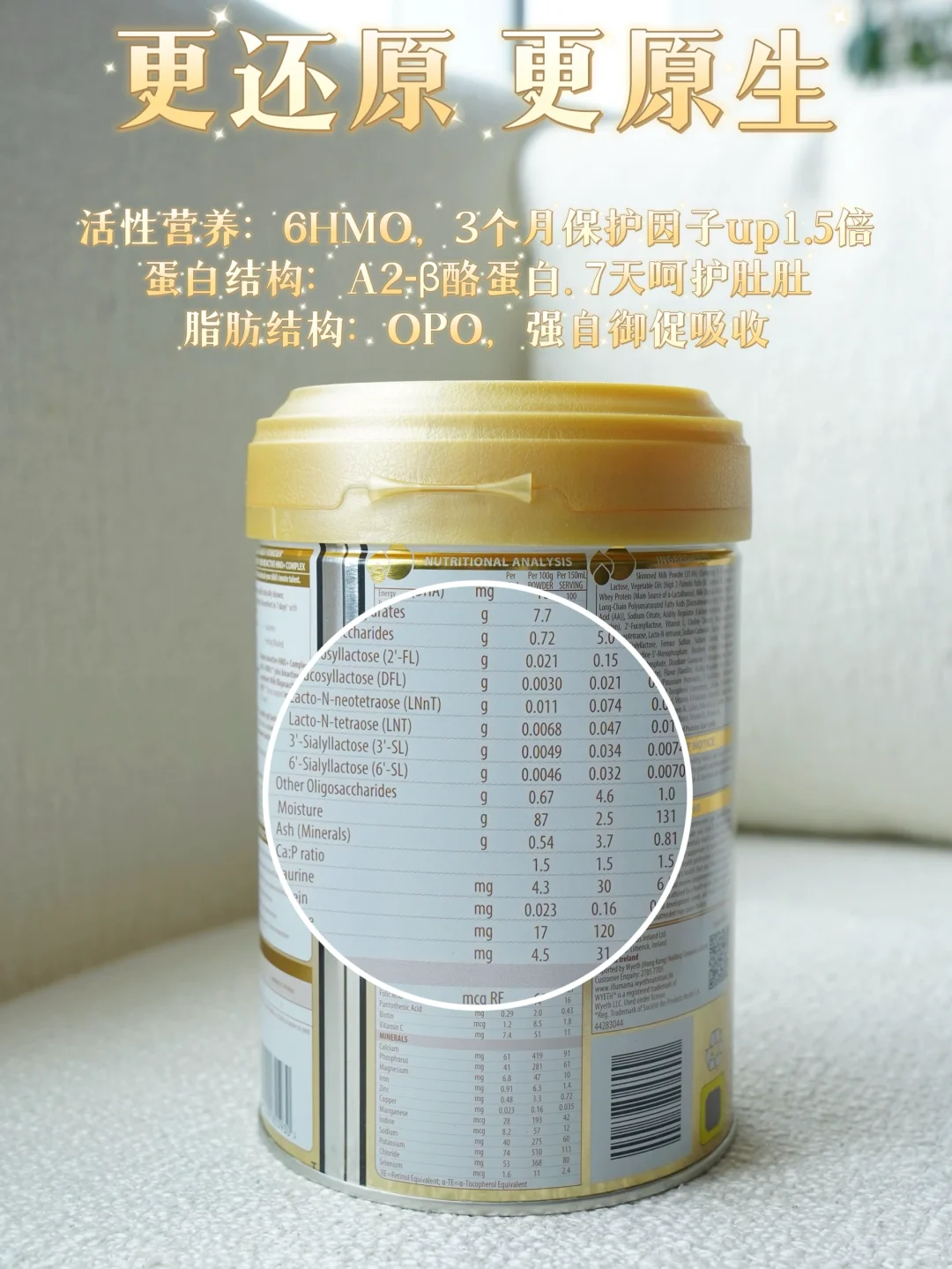 很多新手妈妈选奶粉都会只盯着A2奶源,其实真正适合娇嫩肚宝宝的奶粉,还是要以初始营养为核心,A2蛋白叠加6种HMO,黄金脂肪结构,三管齐下综合发挥作用,才是适合宝宝的