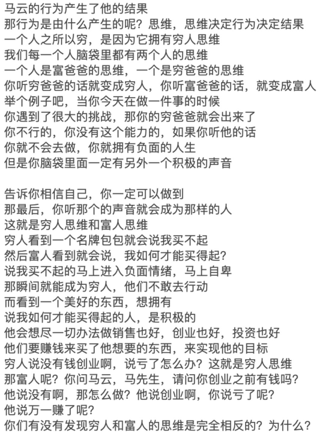那富人呢?你问马云,马先生,请问你创业之前有钱吗?
