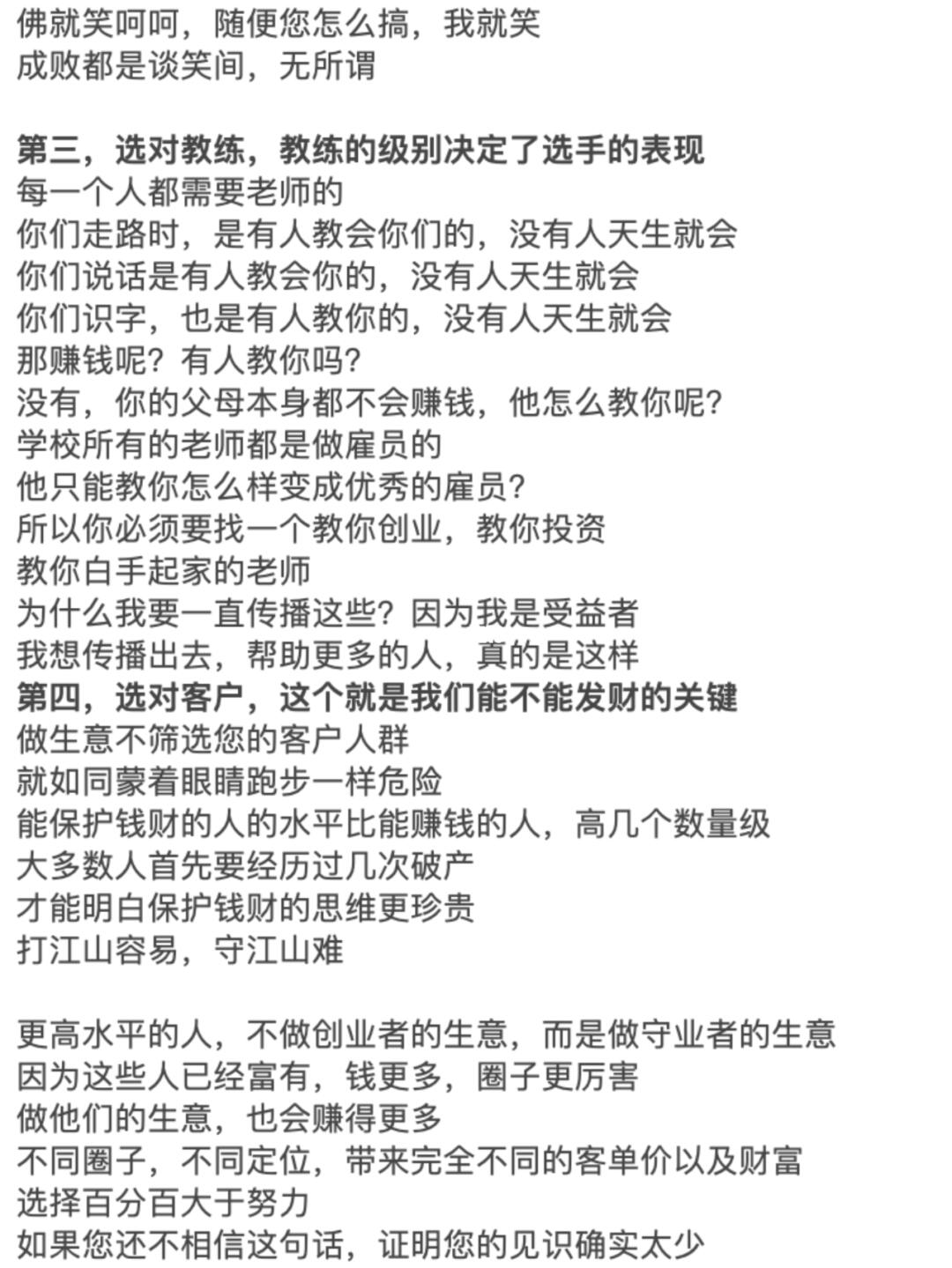 然后现在看着别人做着同样的项目都赚了很多钱,他很懊恼!
