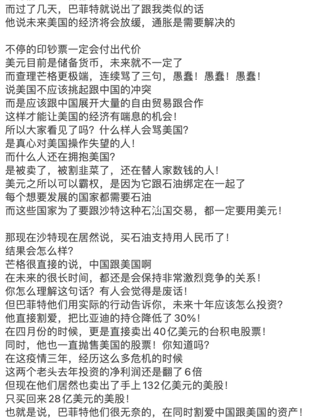 股神巴菲特和查理芒格就在我们脸上啪啪的打了一巴掌