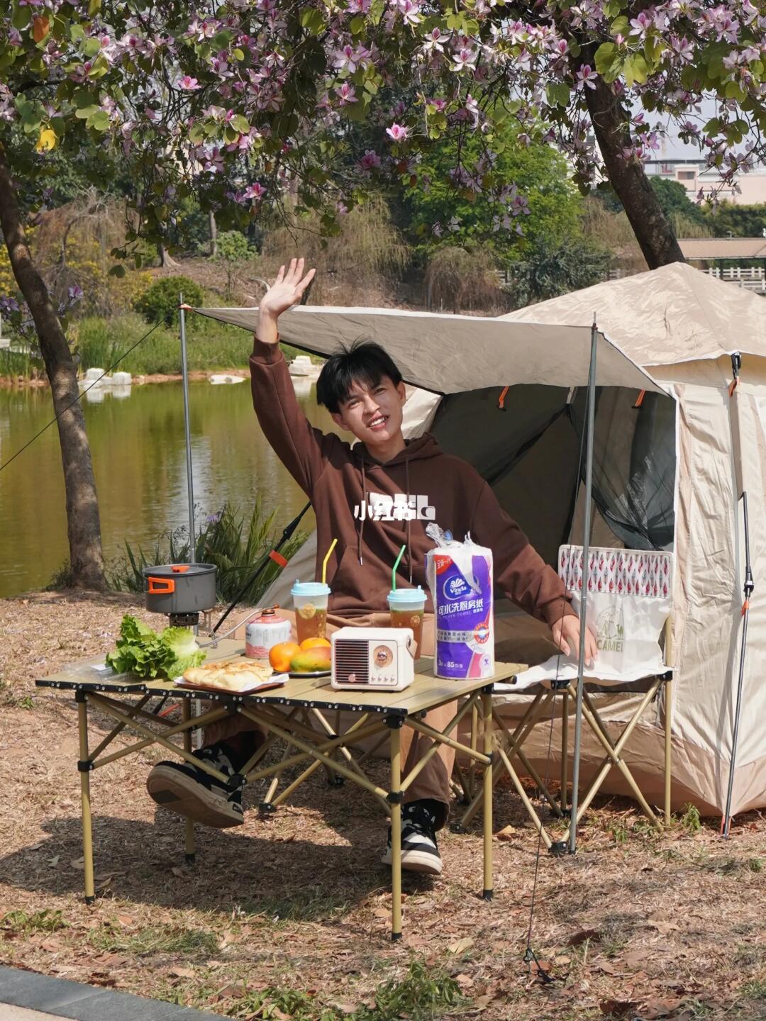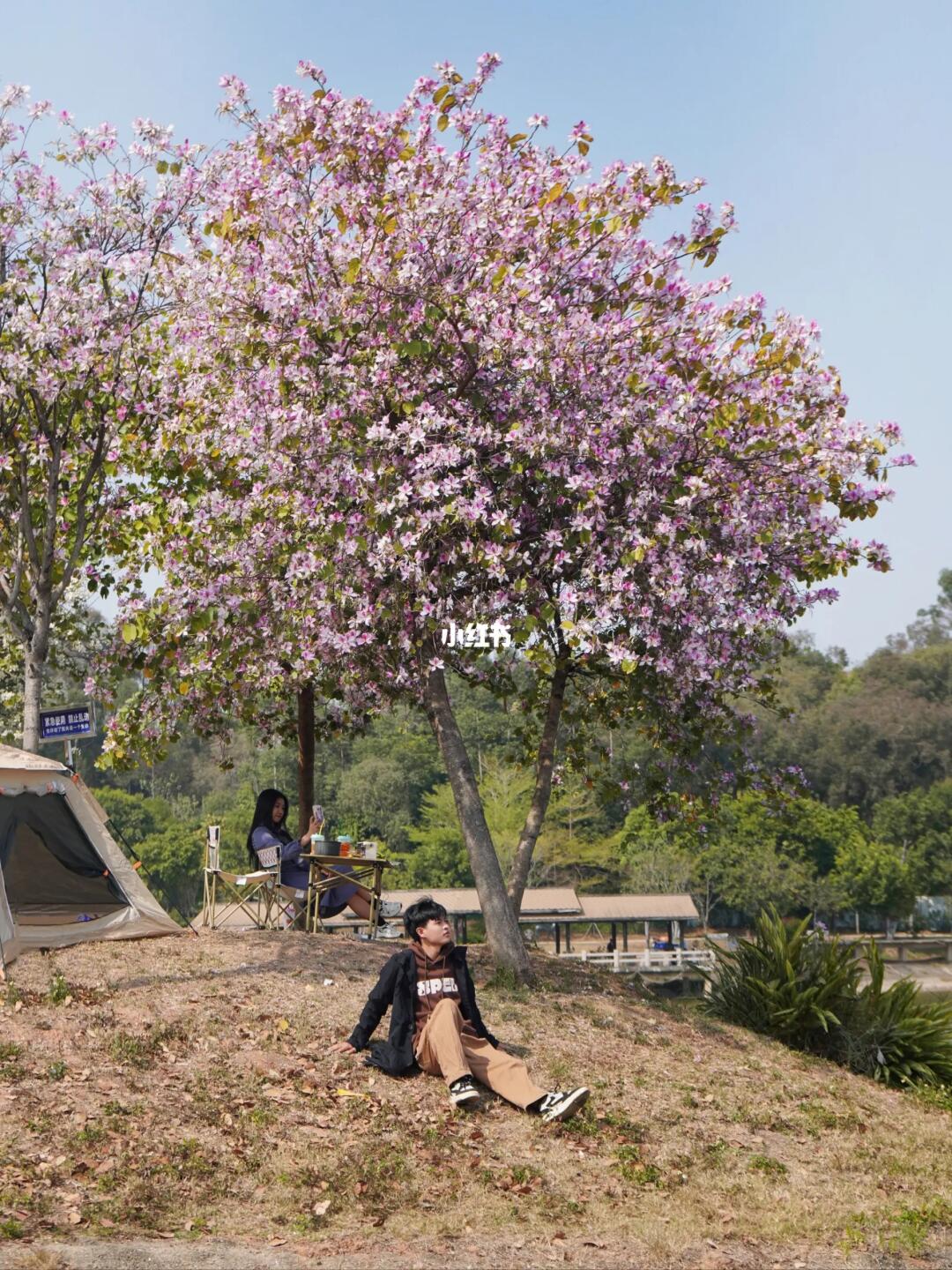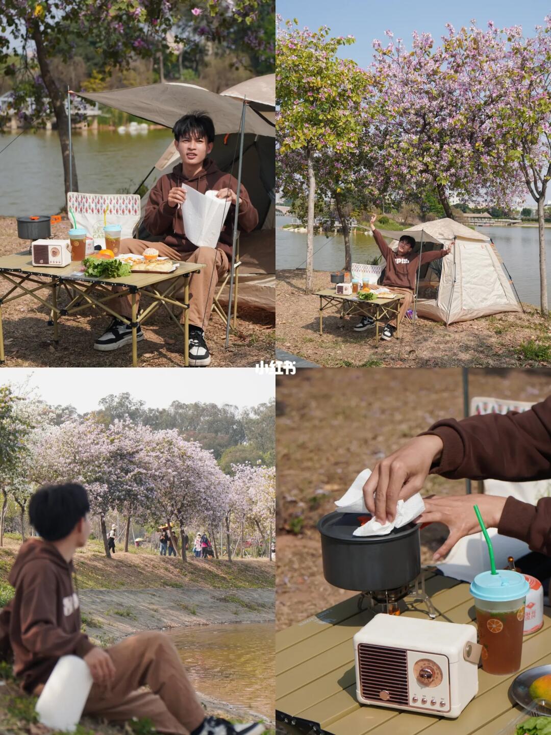 1⃣️因为樱花下面没有空地露营,所以选择湖边紫荆花处搭帐篷,离的很近。可以一遍露营一边赏花。2⃣️可以同卡炉,不能过夜!