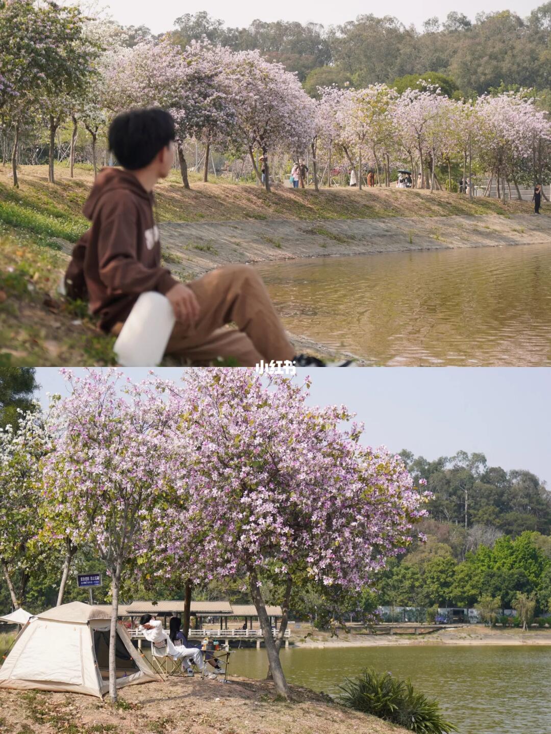 🌸今年海仔湖的樱花与紫荆花一同盛开了,就坐落在湖边,很适合过来露营野餐,拍照📸!