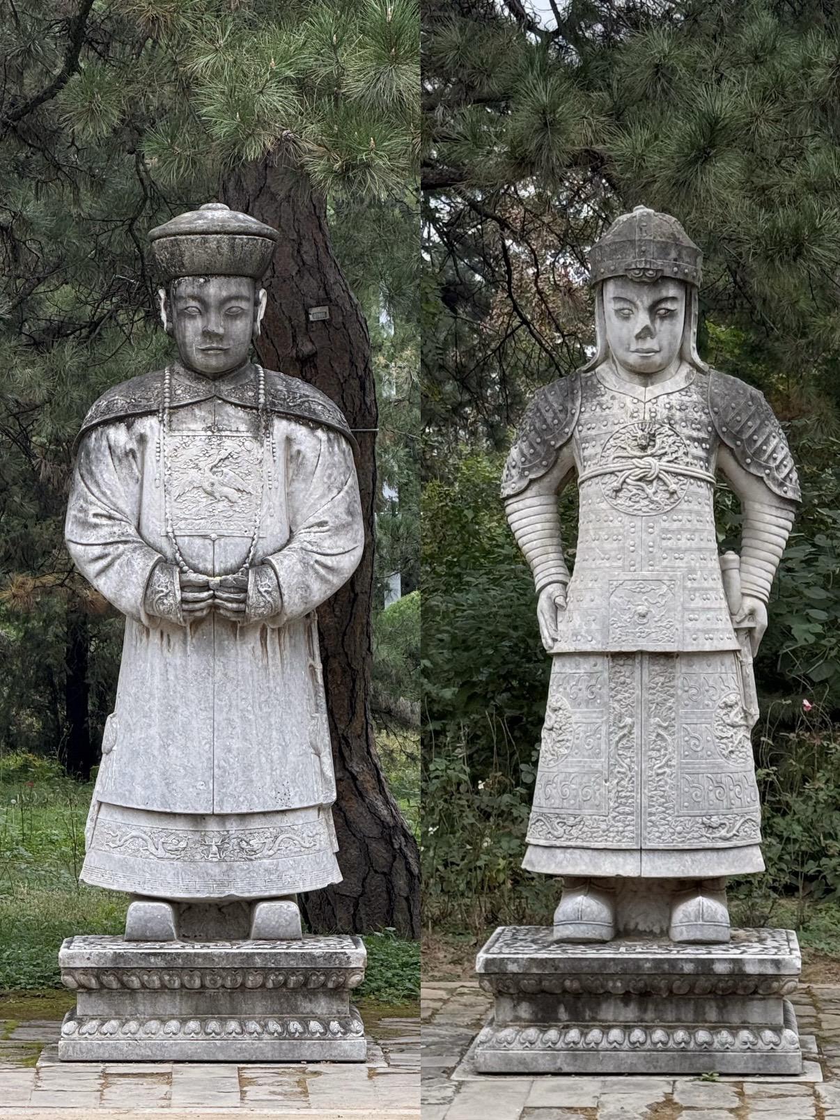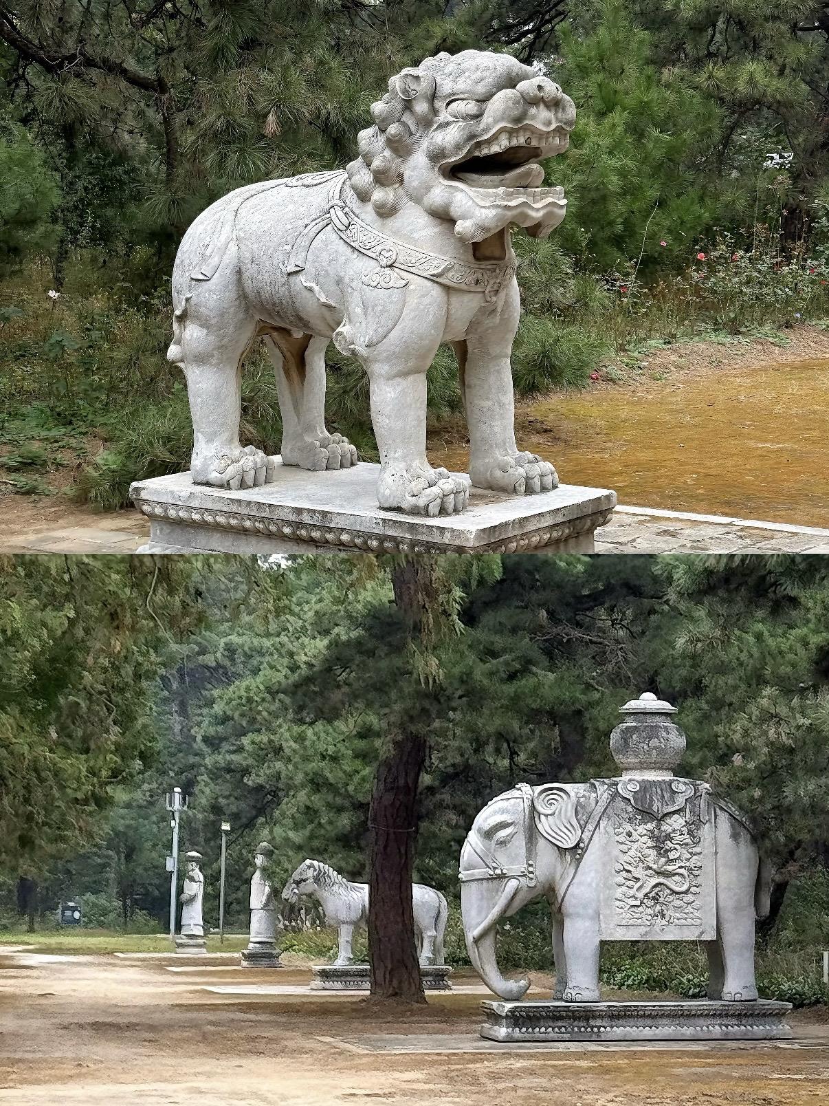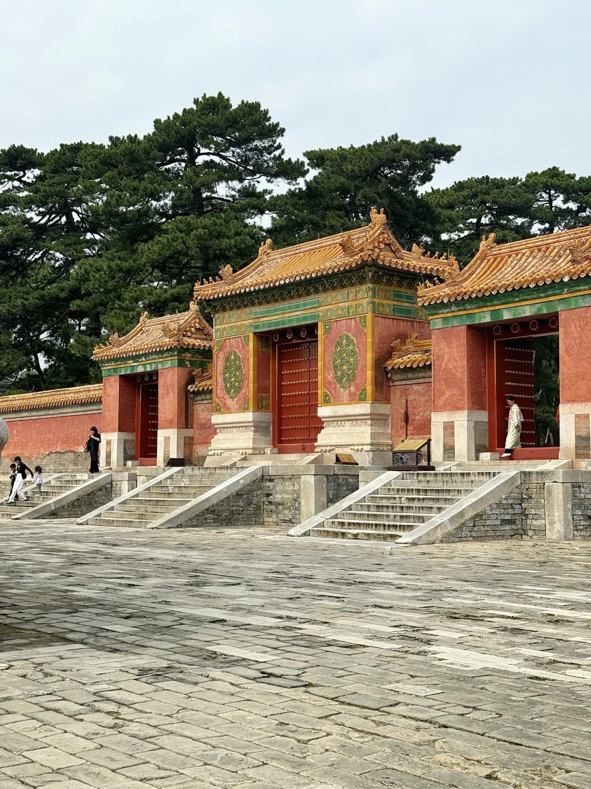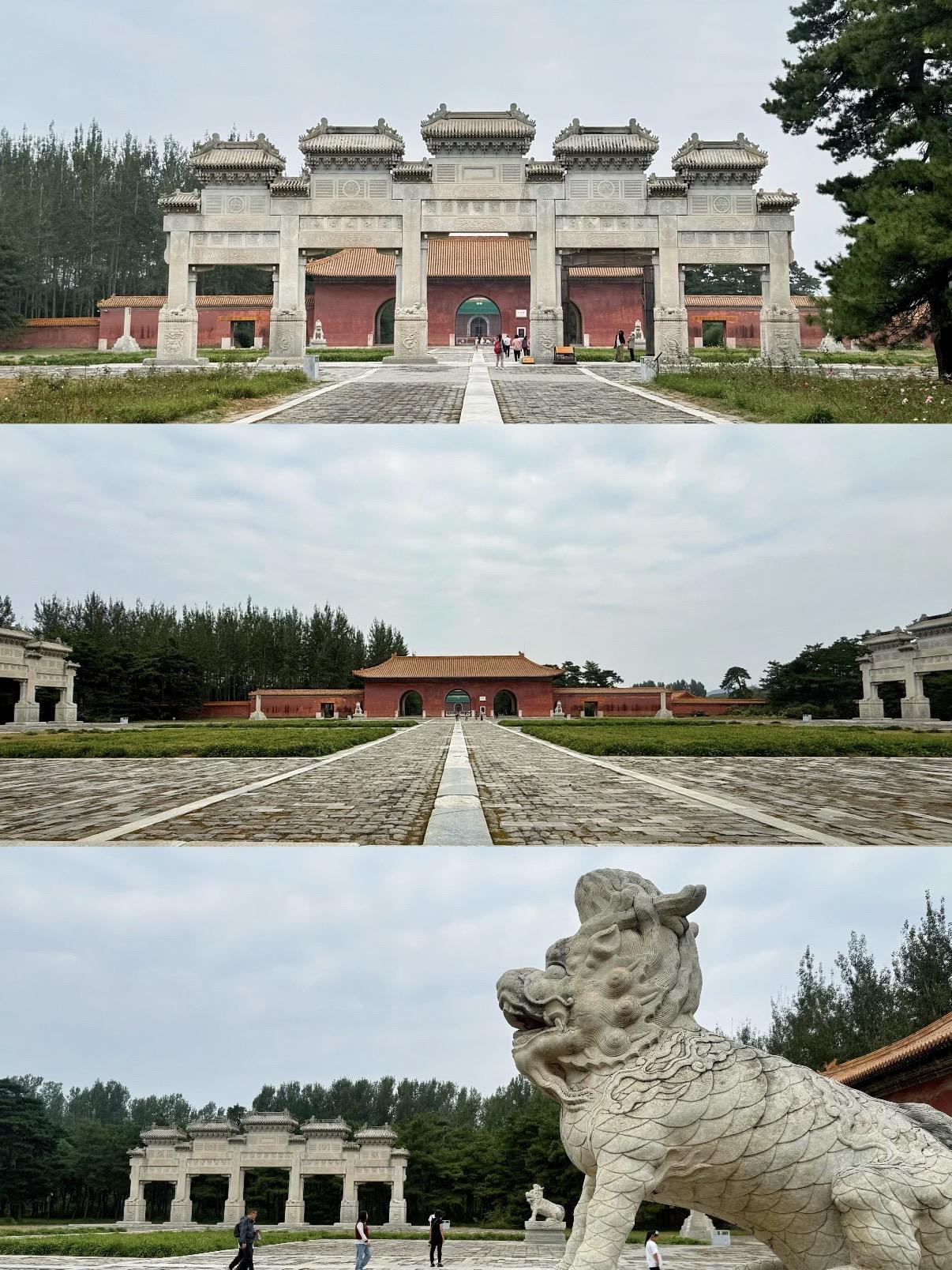 图片按拜谒路线放的~入关后的清代帝陵在规制上基本沿袭明代,从五孔桥、石牌坊、大红门起,经具服殿、三孔桥、圣德神功碑楼、七孔桥、石像生、龙凤门、三孔桥、下马牌、三路三孔石桥、神道碑亭、神厨库、东西朝房、东西班房、隆恩门、