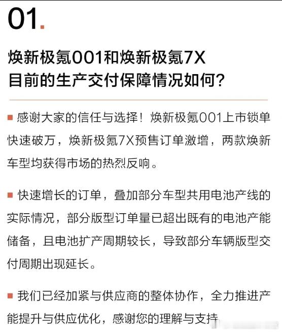 换新版极氪007会推迟到明年2季度上市,主要也是因为目前极氪新的001和7X都需要快速上量交付,极氪太需要一款爆款车型来提振销量了