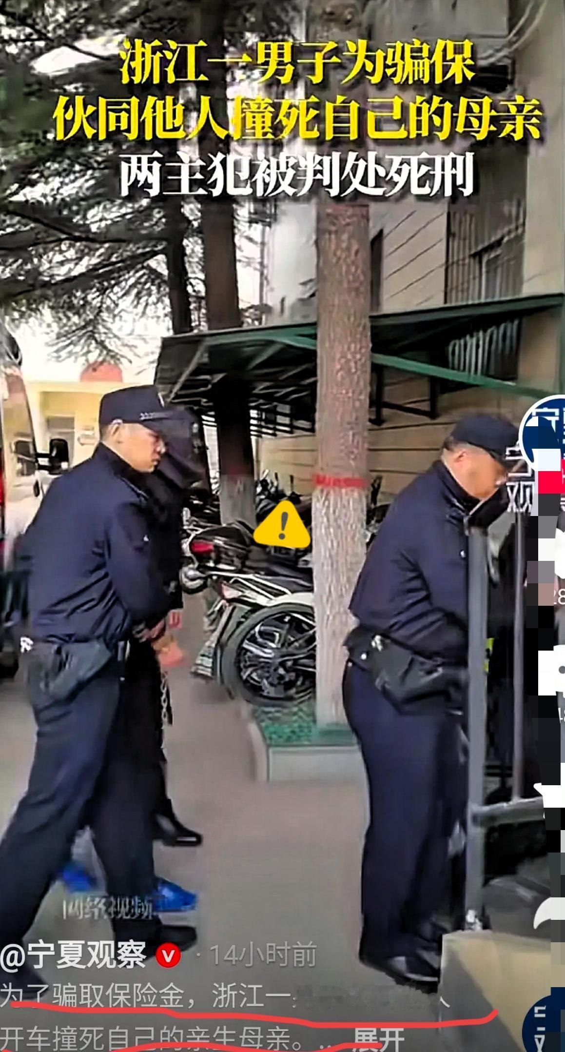浙江台州,弑母骗保案中,最讽刺的,不是23岁儿子联合外人撞死母亲,也不是父亲知道儿子的计划,却听之任之,而是这位当父亲的,竟也成了儿子下手的目标! 你说这叫什么事?为了钱,儿子先是想戳瞎母亲,失败后又劝父亲让自己弄瞎眼睛——父亲居然答应了,就为了那1318元理赔金。更荒唐的是,他明知道儿子要对妻子下毒手,嘴上说着拒绝,最后却松了口,一句“随便怎么样都行”,把家彻底推向了深渊。 这哪是“有其父必有其子”,分明是一家人被贪婪缠成了死结。父亲以为睁只眼闭只眼能躲过去,却没想过,当亲情成了可以算计的筹码,谁都逃不掉。如今家破人亡,他没被判刑,却要背着一辈子的“默许”活下去,这悔恨比坐牢还磨人。 其实啊,钱再难挣,也不该拿骨肉亲情当赌注。你觉得,到底是穷把人逼疯了,还是人心底的贪念,才是最可怕的魔鬼?