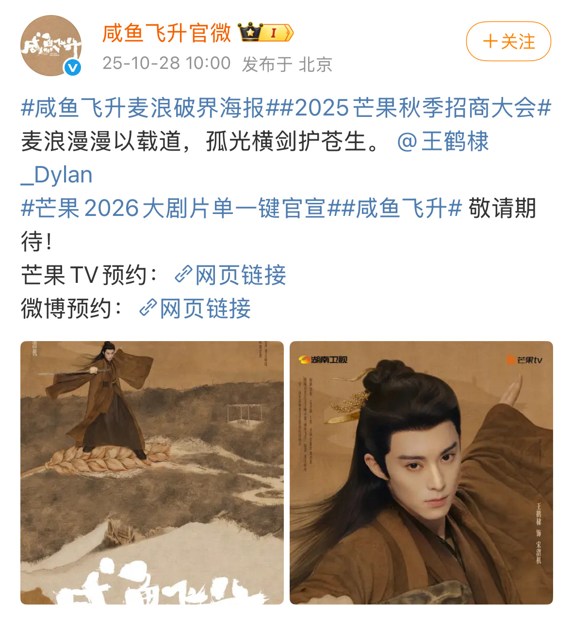 芒果片单,王鹤棣咸鱼飞升单人官宣单人海报宋潜机一番大男主,这也太🐮比了。