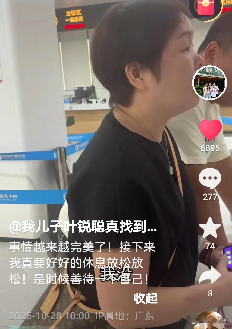 叶锐聪妈妈发视频说,今天要做正经事了, 第一就是把该送的锦旗都送出去, 但是后面没有看到都送谁了,也没有合影拍照, 可能人家不想露脸吧,好吧尊重人家的意愿吧, 叶锐聪妈妈把锦旗一一送完,又来到了东苑行政中心来看看叶锐聪的证件办好了吗,免得她夜长梦多, 接下来叶锐聪妈妈发文说,事情越来越完美了,接下来我真的好好休息休息,放松放松,是时候善待一下自己!