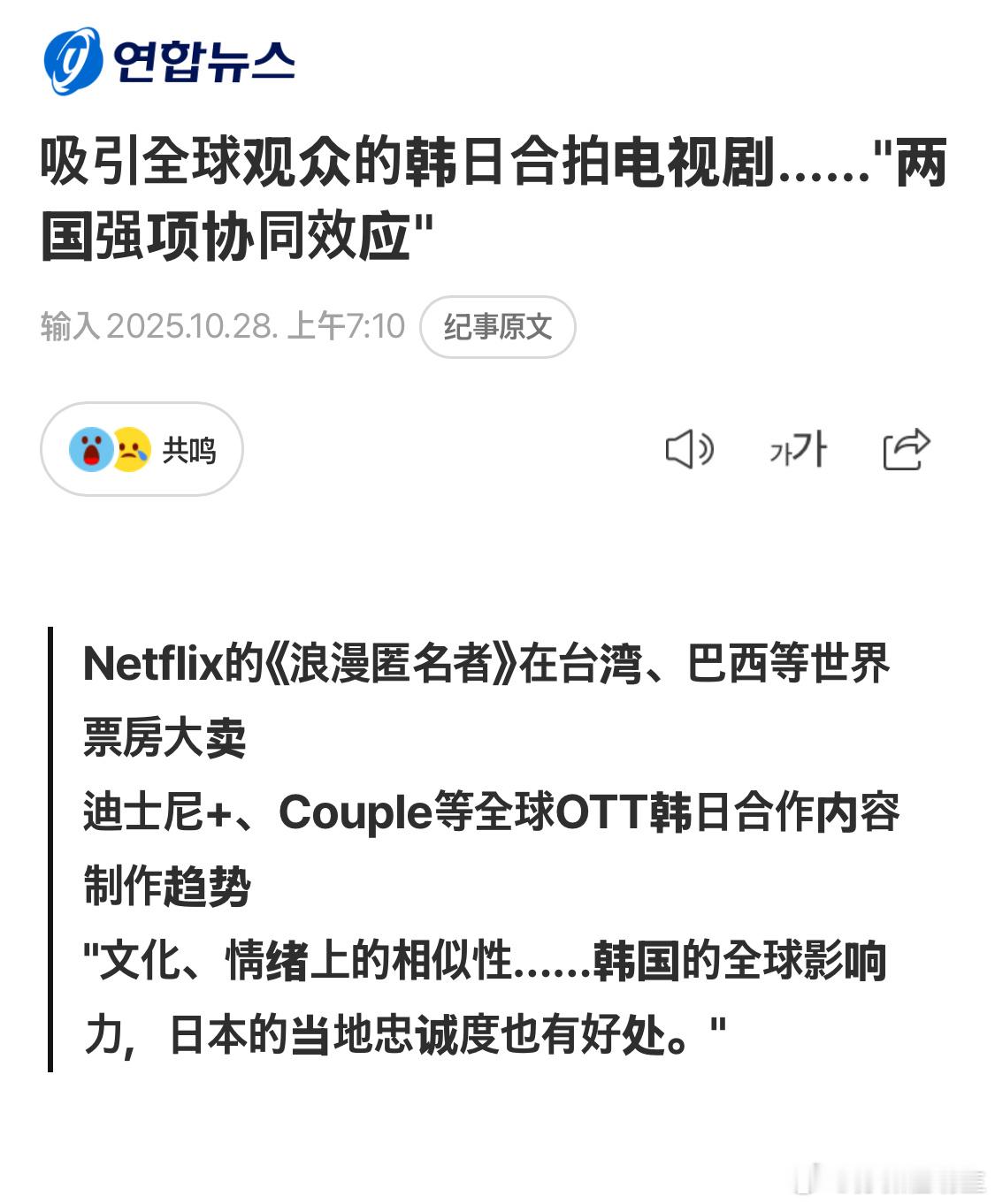 【热帖】吸引全球观众的韩日合拍电视剧…两国强项协同效应