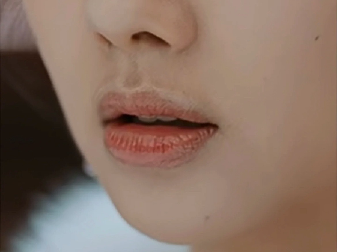 女主的嘴一整部剧下来都像干裂出血,能理解想缩小嘴唇但是这化得真的是…还不如用雾面唇釉,透明唇釉透出粉底显得嘴脏脏的,不仅没起到缩小嘴唇的效果,反而让人一直盯着嘴看…