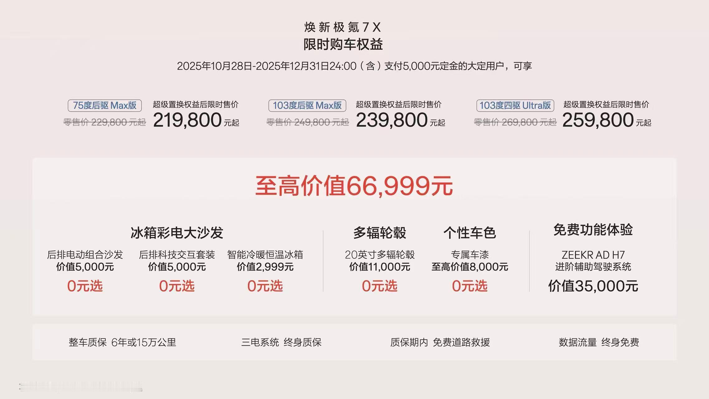 焕新极氪7X极氪7X售价22.98万,限时售价21.98万起,还有至高价值66999元的限时购车权益。焕新极氪7X上市