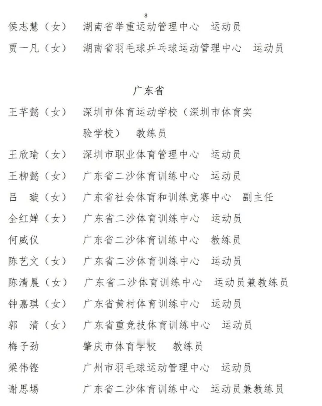刘圣书、谭宁、何冰娇、王昶、郑思维、黄雅琼、李诗沣、梁伟铿、贾一凡、陈清晨等多位羽毛球运动员拟获全国先进表彰!