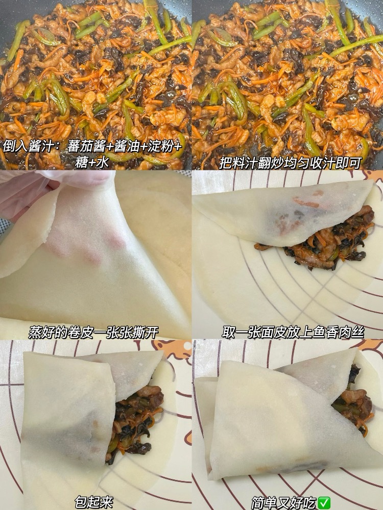 给娃安排上了鱼香肉丝卷饼[馋嘴]浓郁酱汁裹满软嫩肉丝,配上清甜脆脆的蔬菜丝,卷进软fufu的饼皮里🌯,咬一口满满幸福感!自己做吃得安心又营养,挑食娃抢着要!