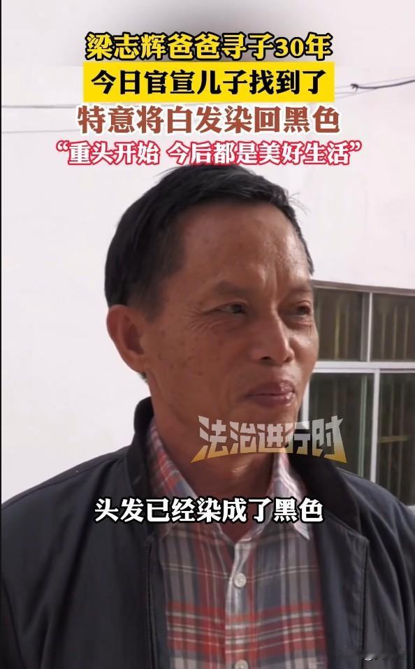 我最关心的寻亲就是梁志辉的事!他爸爸寻了30年,头发都熬白了,这些年风里来雨里去,为了找儿子不知道跑了多少路、问了多少人,吃的苦数都数不清。 现在终于找到儿子了,特意把白发染黑,就盼着“从头开始”过好日子。真希望梁志辉赶紧认亲回家,好好抱抱爸妈,看看他们为了找你熬出的皱纹和白发。以后可得好好照顾他们,让他们安享晚年,这一家人也能真正团圆,过上热热闹闹的安稳日子,不然他爸爸这30年的苦可就白受了。