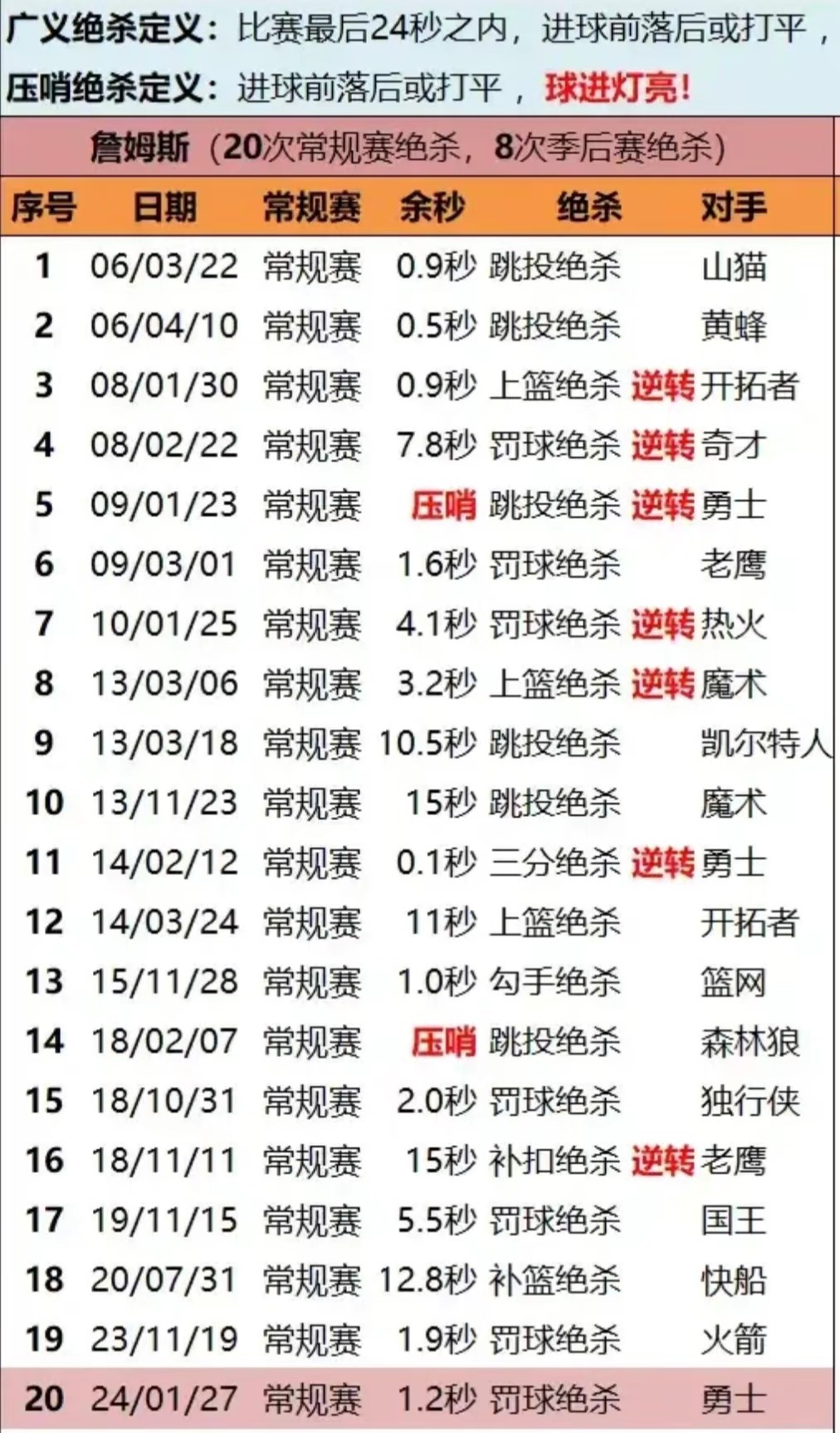 竟然还有人质疑詹姆斯的关键球能力?他历史第一!